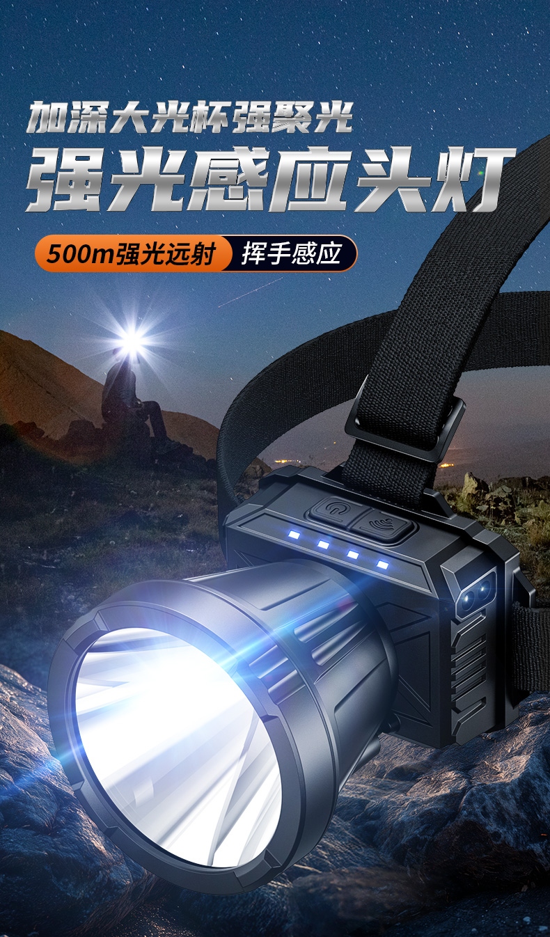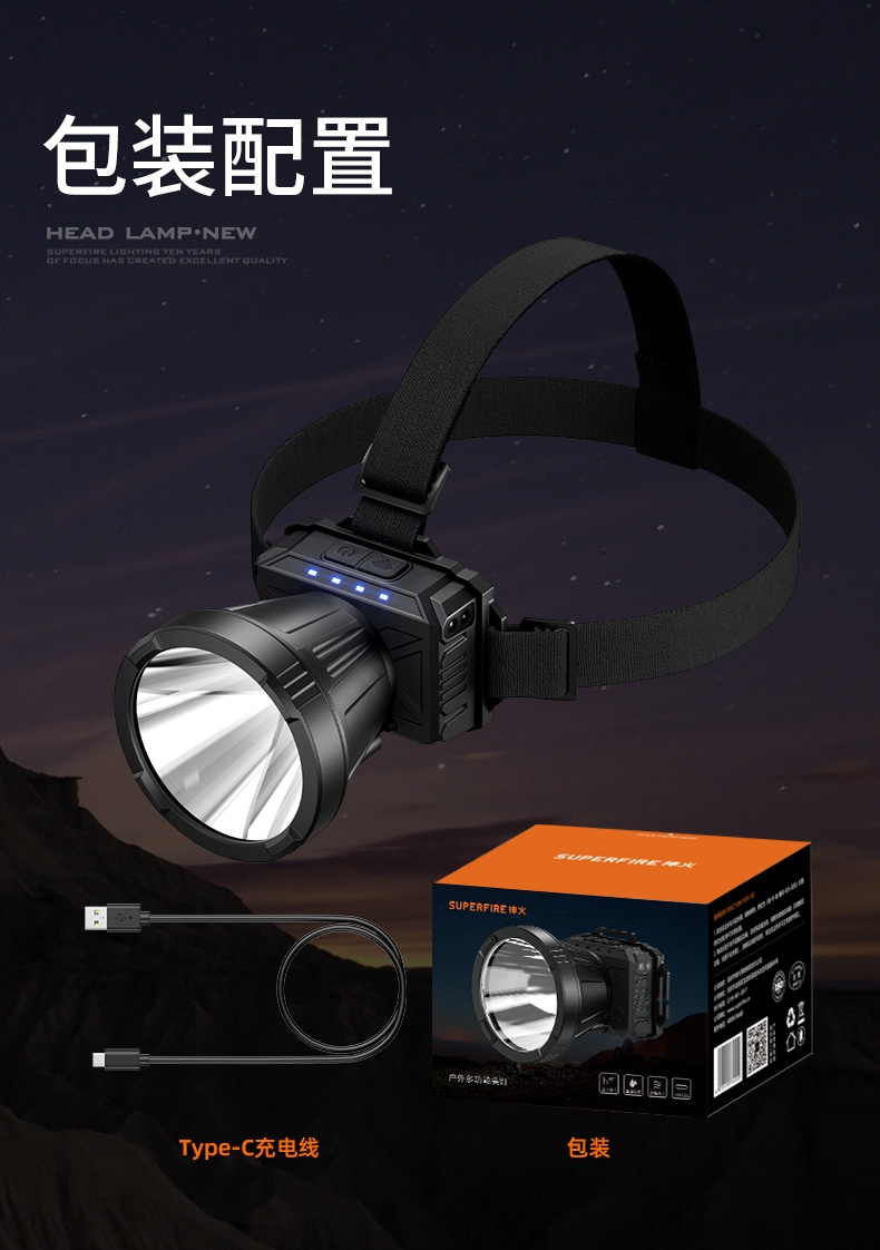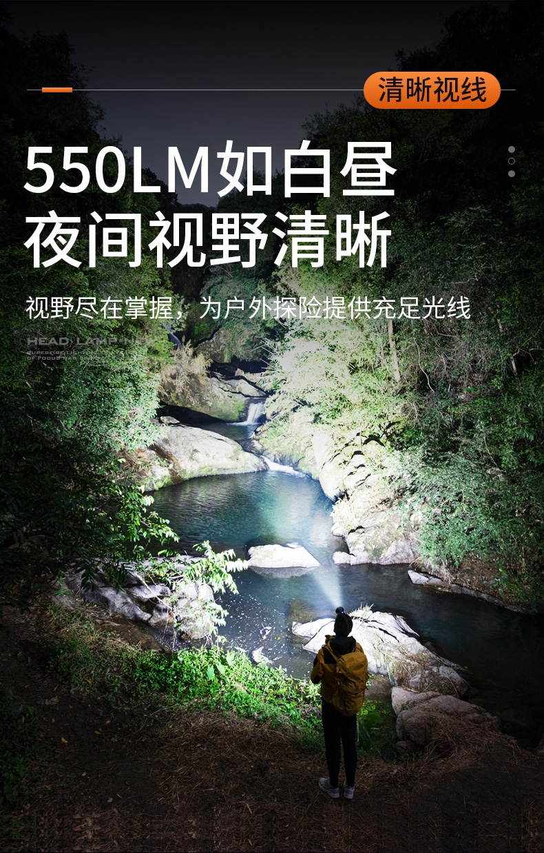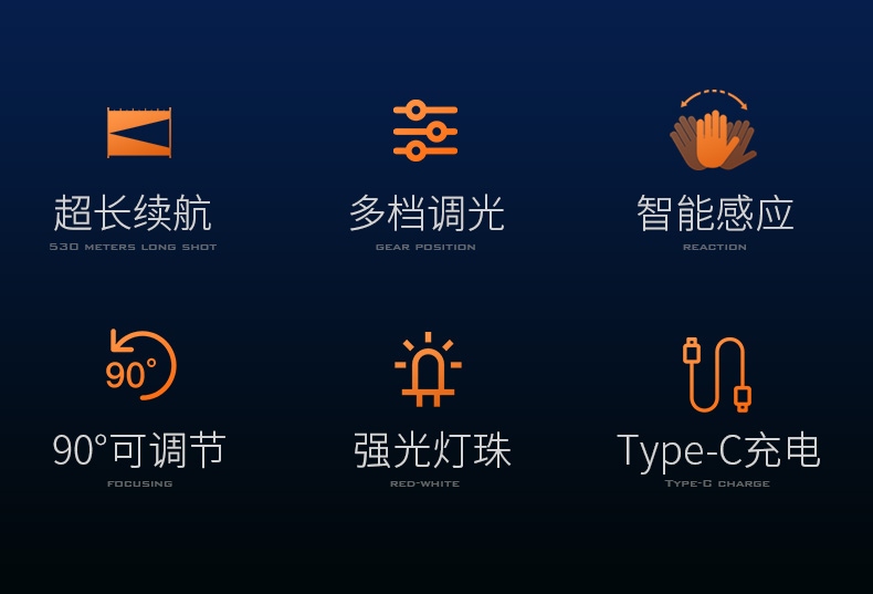 强光亮度,运动头灯,前后均衡设计,轻便不压头,可调节式头灯带,佩戴方便舒适,伸缩调焦,光照范围大,照射距离远,头灯角度调节,超90度角度随意调节,适宜各种环境使用