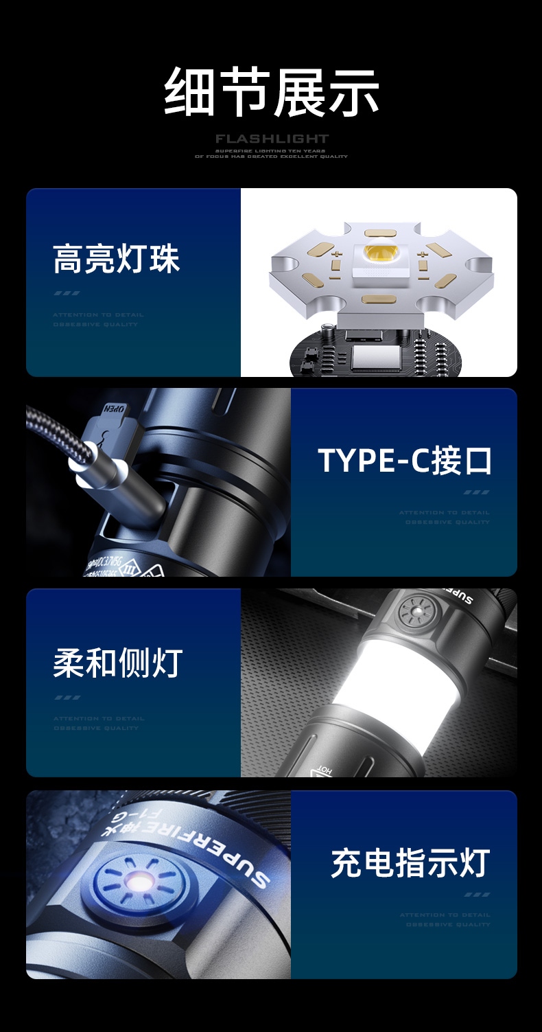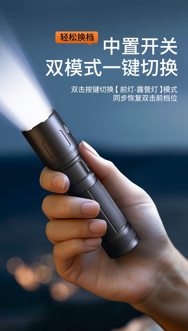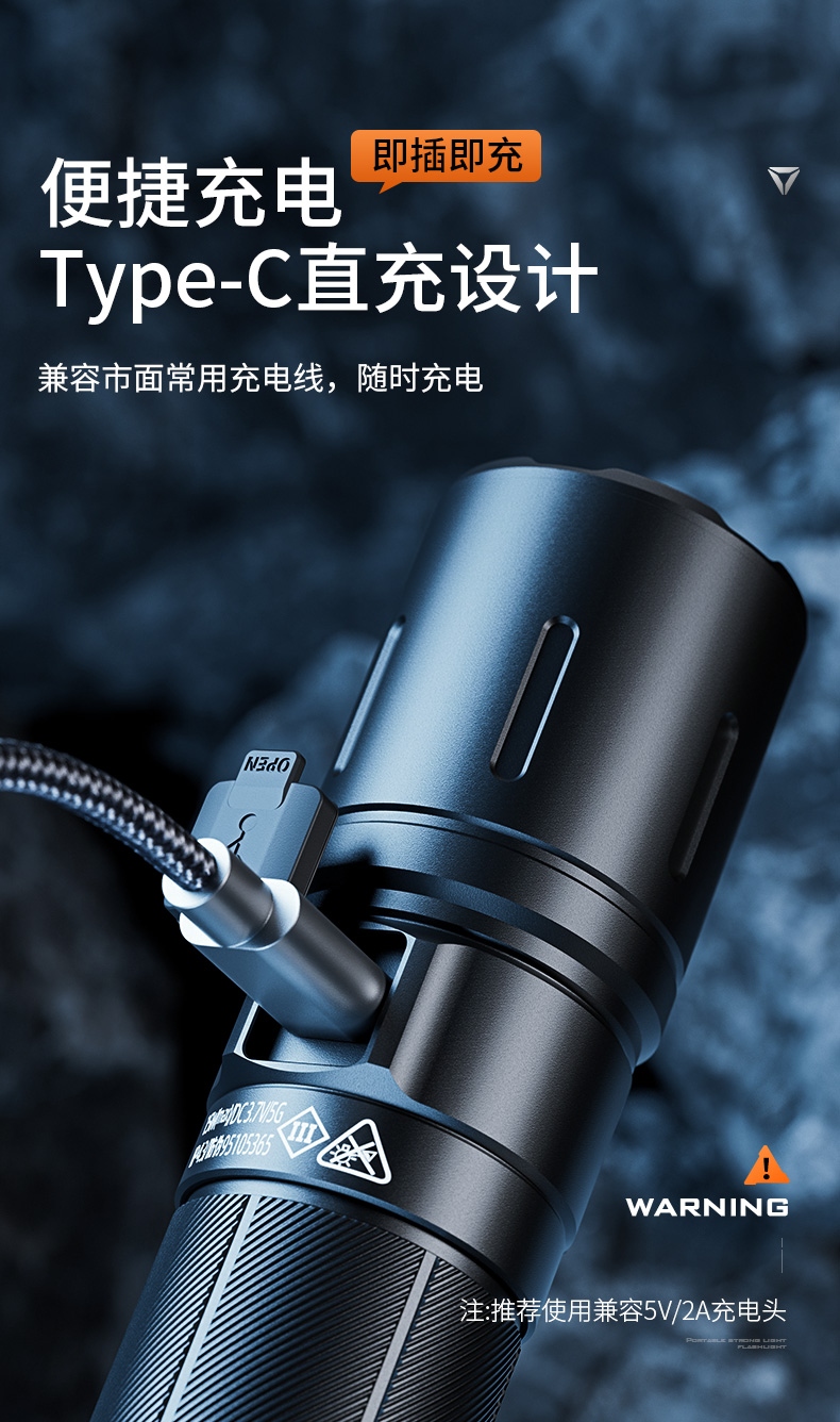 四档调光 Type-C充电 电量显示 铝合金筒身 持久续航 强力防水