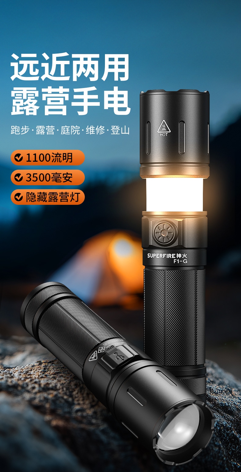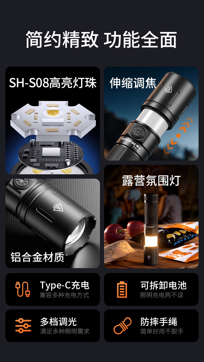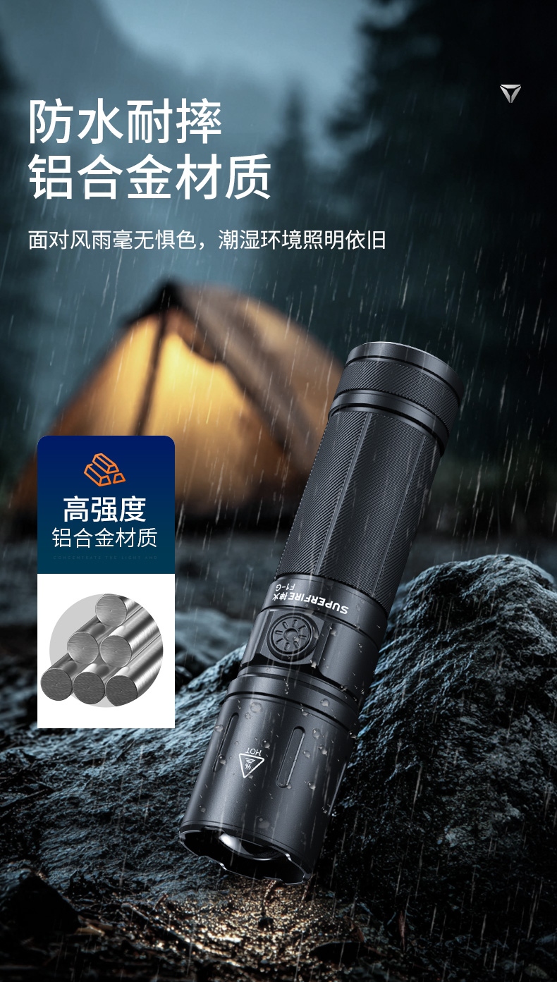 四档调光 Type-C充电 电量显示 铝合金筒身 持久续航 强力防水
