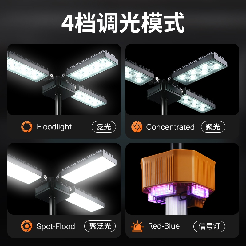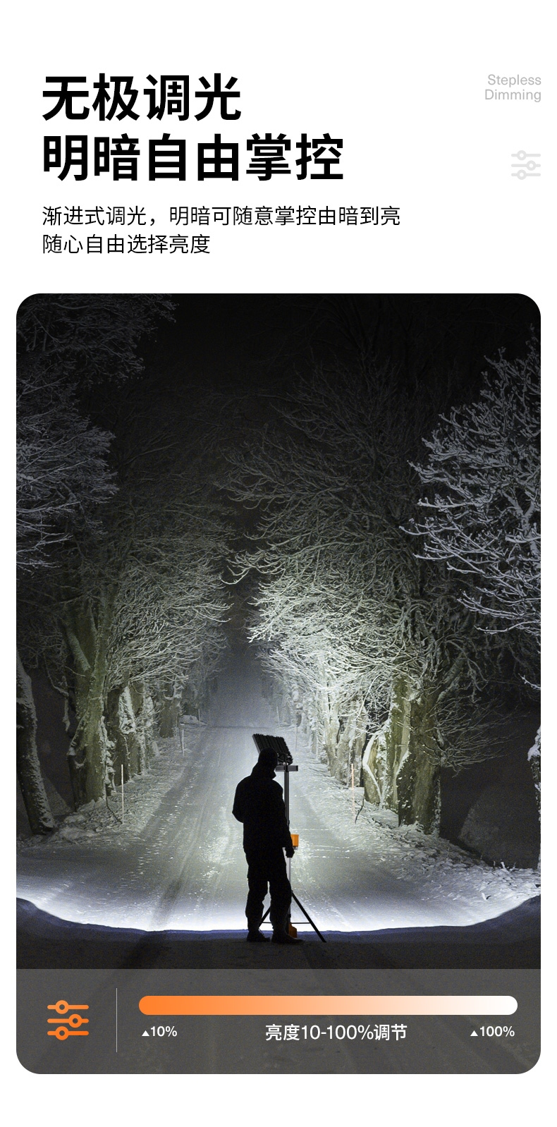 3.2 轻按显示屏左下侧按钮,切换灯具泛聚光照明模式,长按此按键2~3秒开启/关闭信号灯模式;
