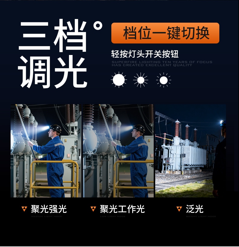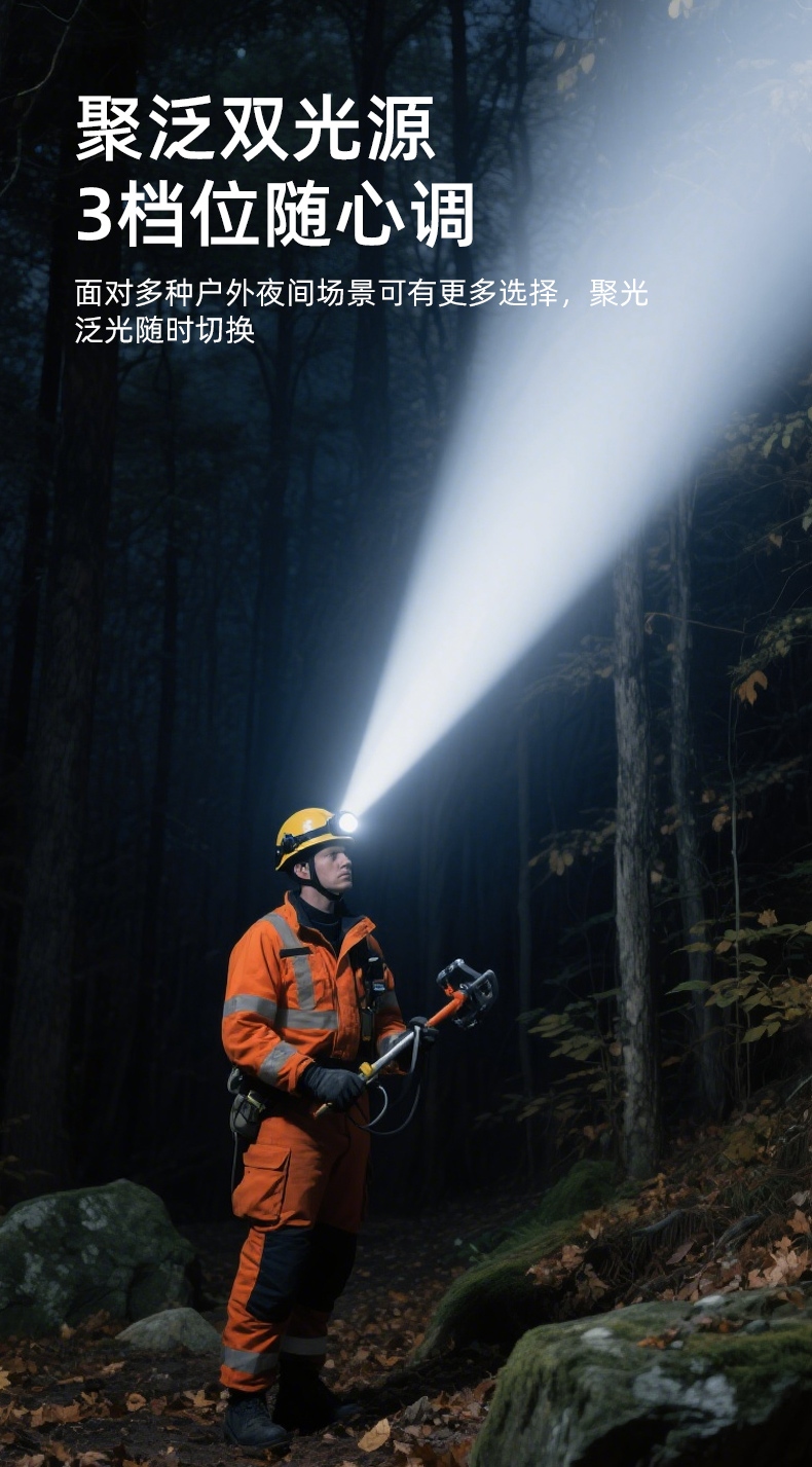强光亮度,运动头灯,前后均衡设计,轻便不压头,可调节式头灯带,佩戴方便舒适,伸缩调焦,光照范围大,照射距离远,头灯角度调节,超90度角度随意调节,适宜各种环境使用