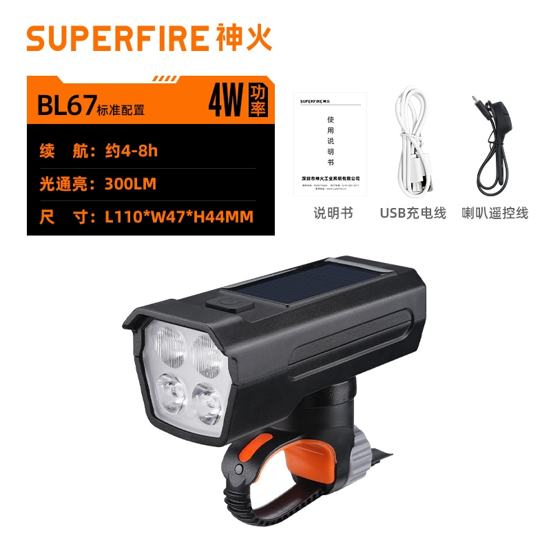 8挡灯光,5种喇叭音效(1米距离可达100分呗),太阳能充电,远近双光,有线遥控.
