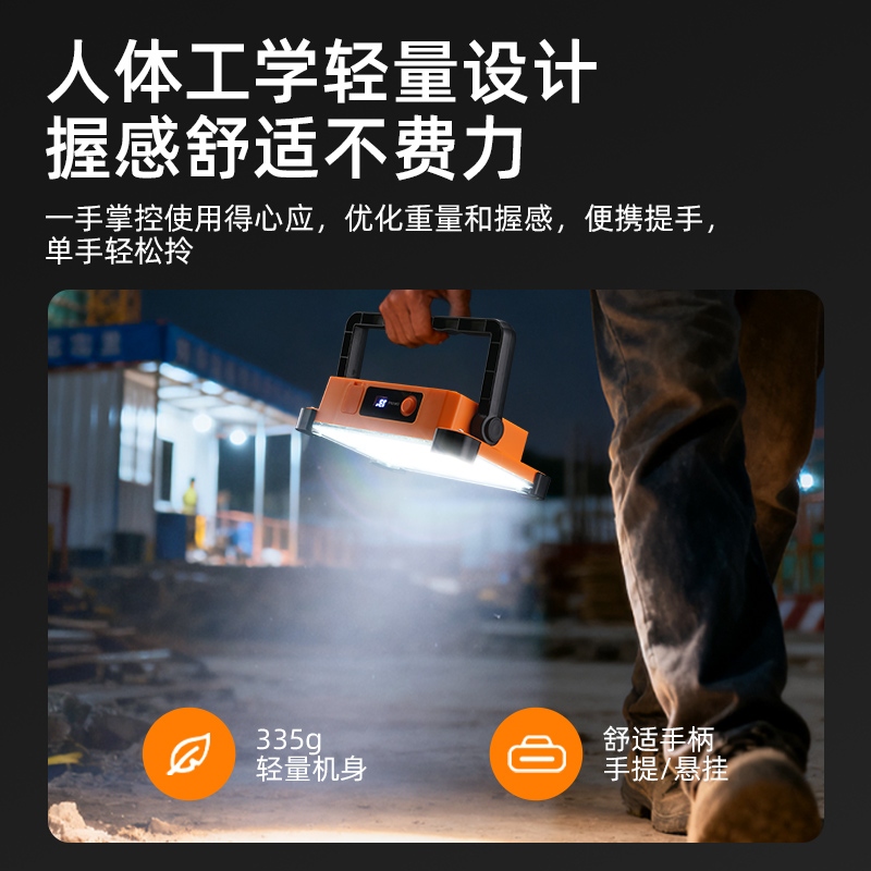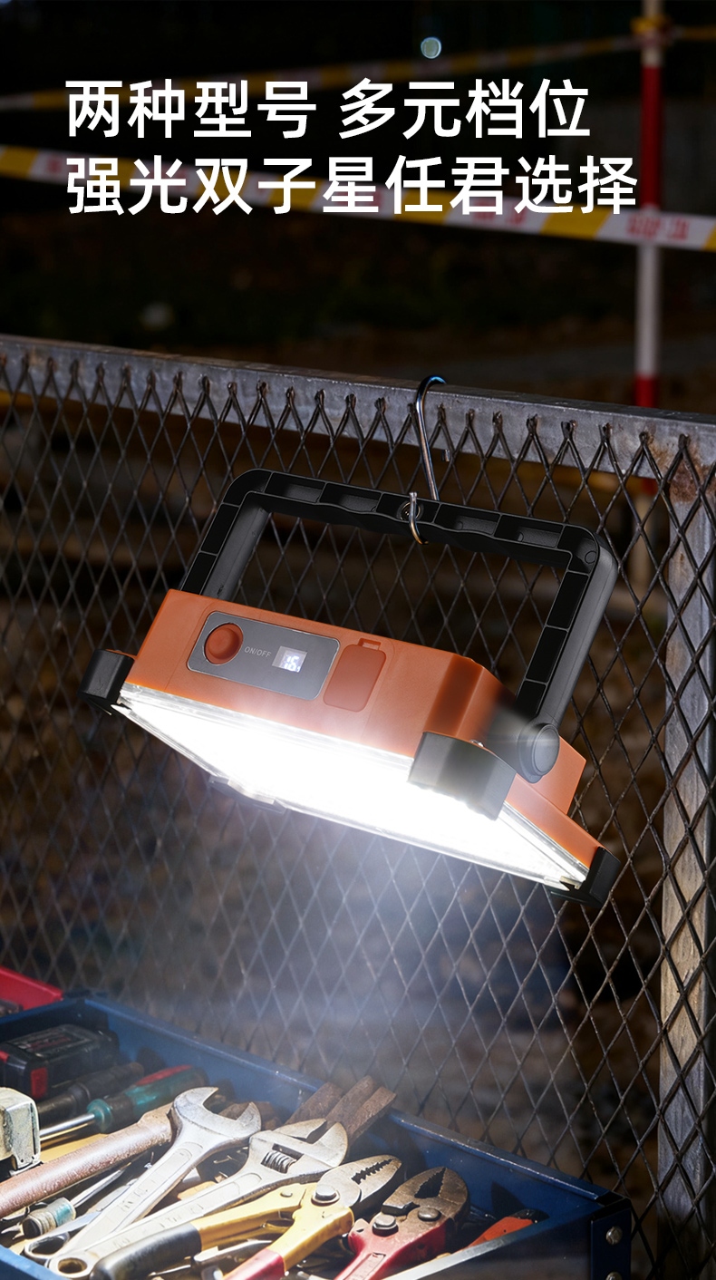 1、多档调光,可满足不同使用场景下的照明需求; 2、含提手,握感更舒适。携带更简单; 3、新型高亮远射灯珠,60W大功率,亮度高,照明效果好。