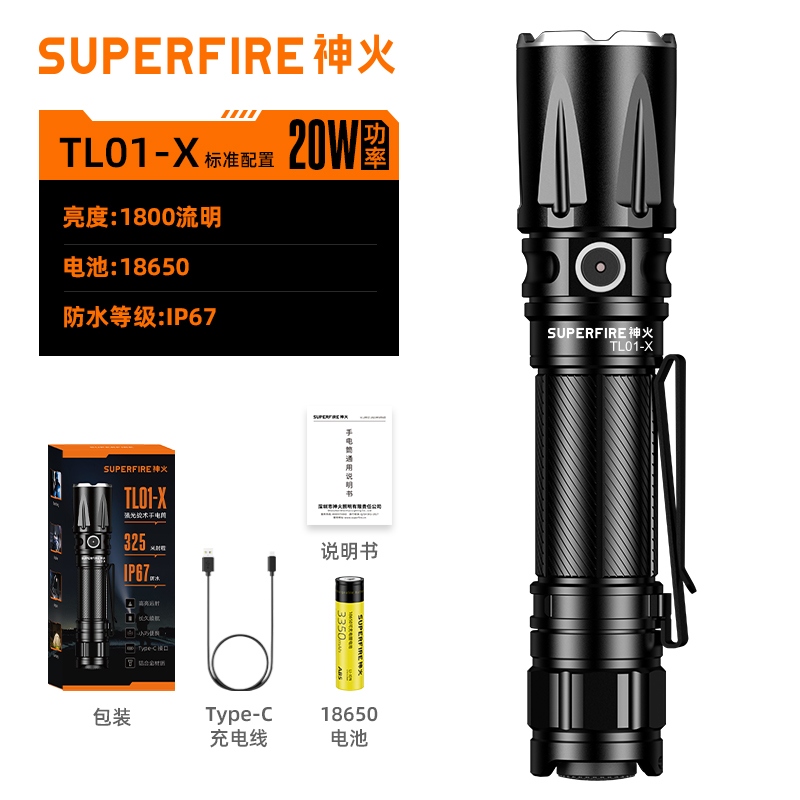 1、千米远射,射程更远,光斑更聚焦。 2、进口灯珠,亮度高,照明效果更好。 3、前后双按键,光源一键点亮,高亮瞬间开启。