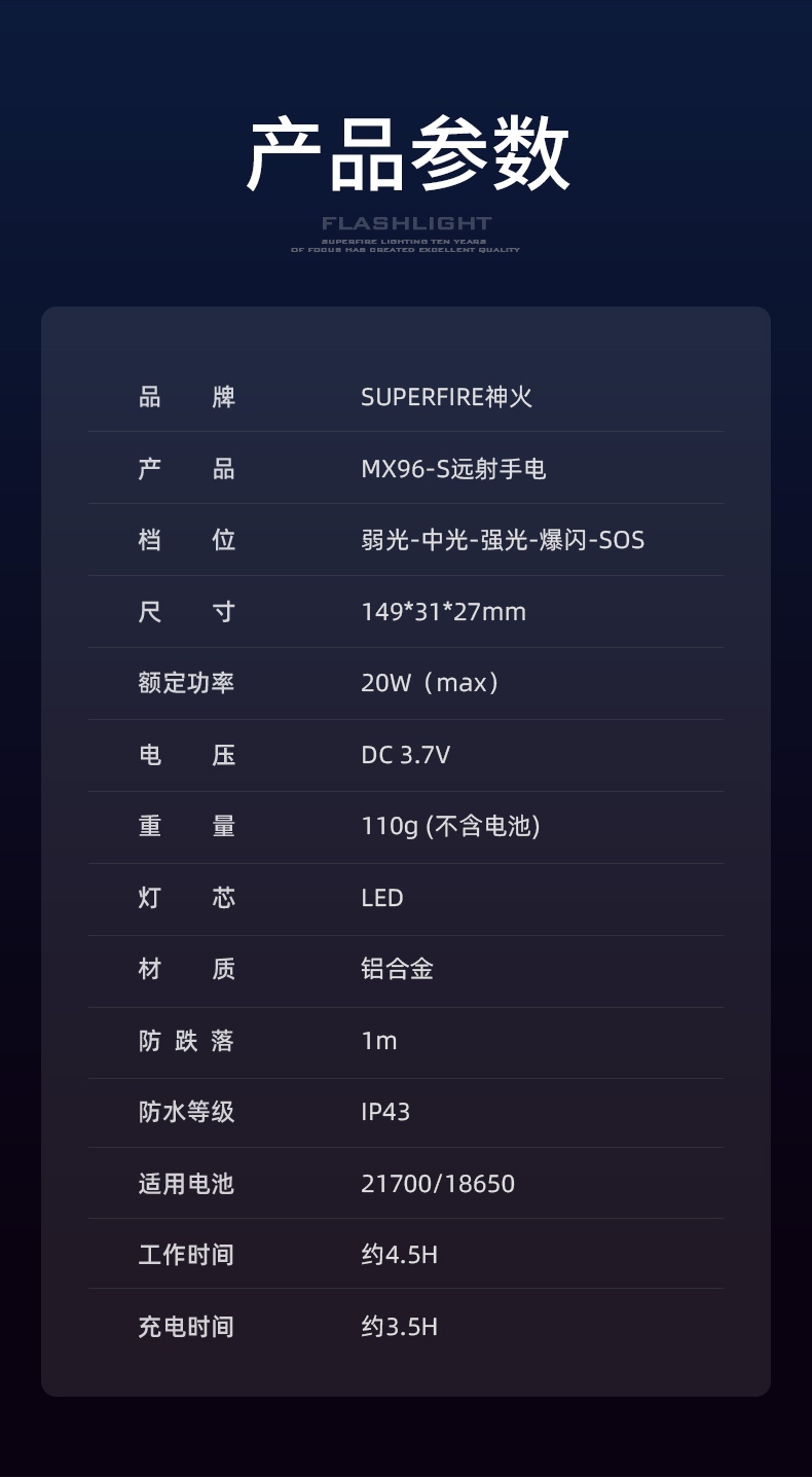 6、约4.5H续航,满足常规夜间照明需求。