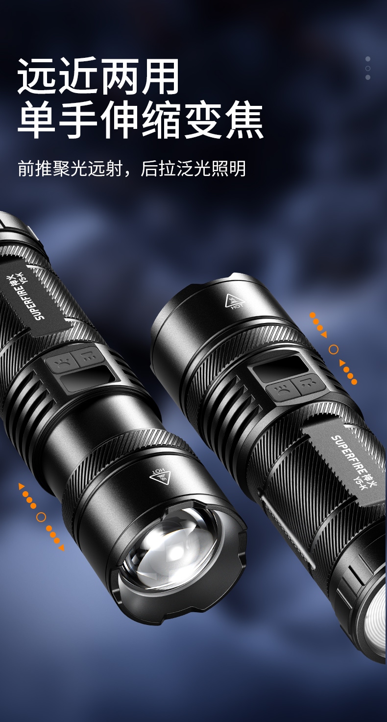2、推拉灯头可实现伸缩调焦。