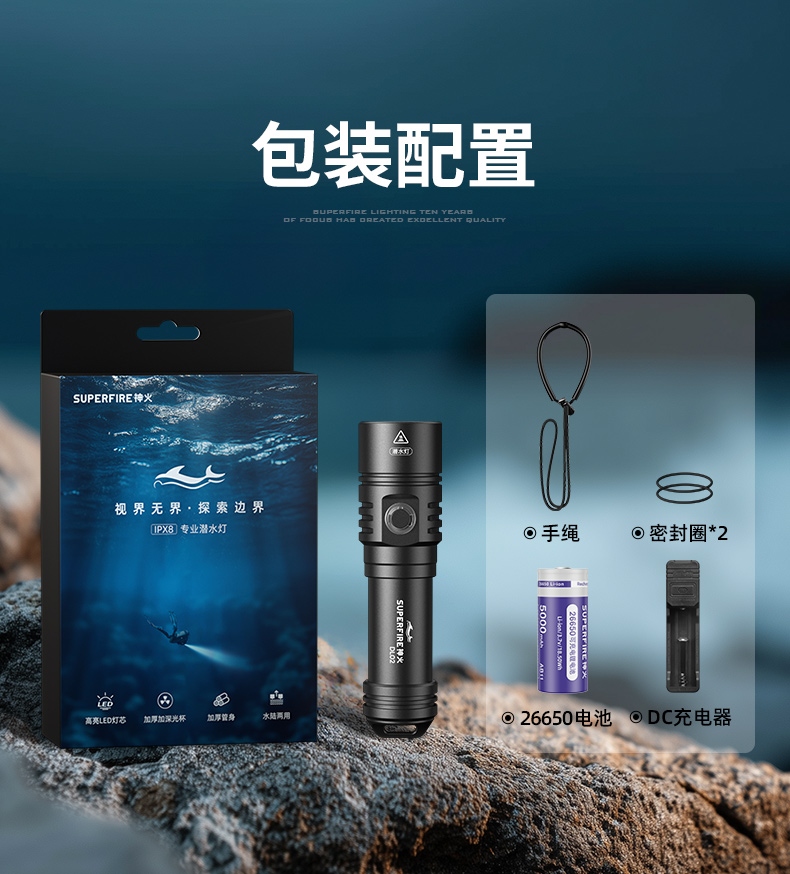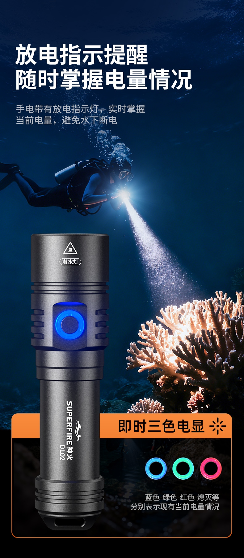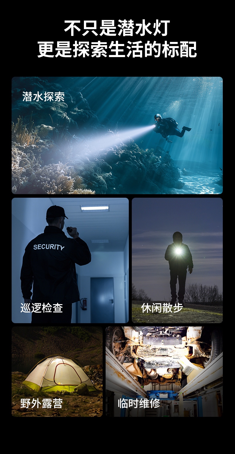 紧凑便携设计:轻量化设计与人体工学外形相结合,方便携带且握持舒适,不会给潜水者带来额外负担。