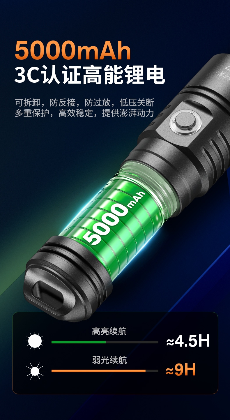 四档调光 Type-C充电 电量显示 铝合金筒身 持久续航 强力防水