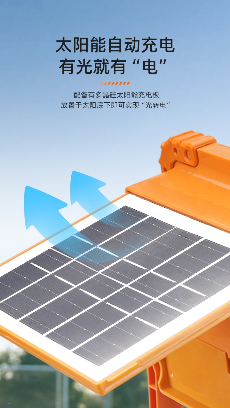 4、带有太阳能充电板,有光就有电。