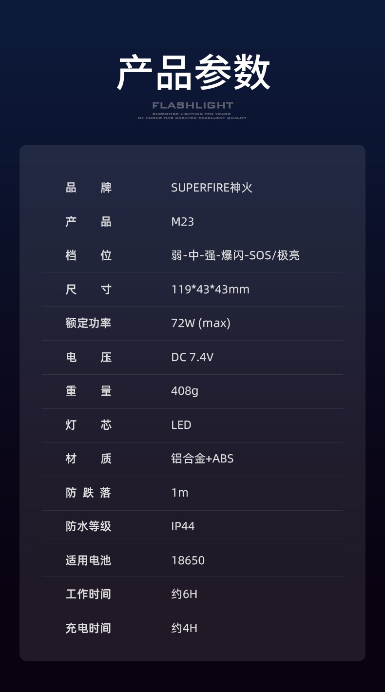 6、铝合金筒身设计,防摔抗击。