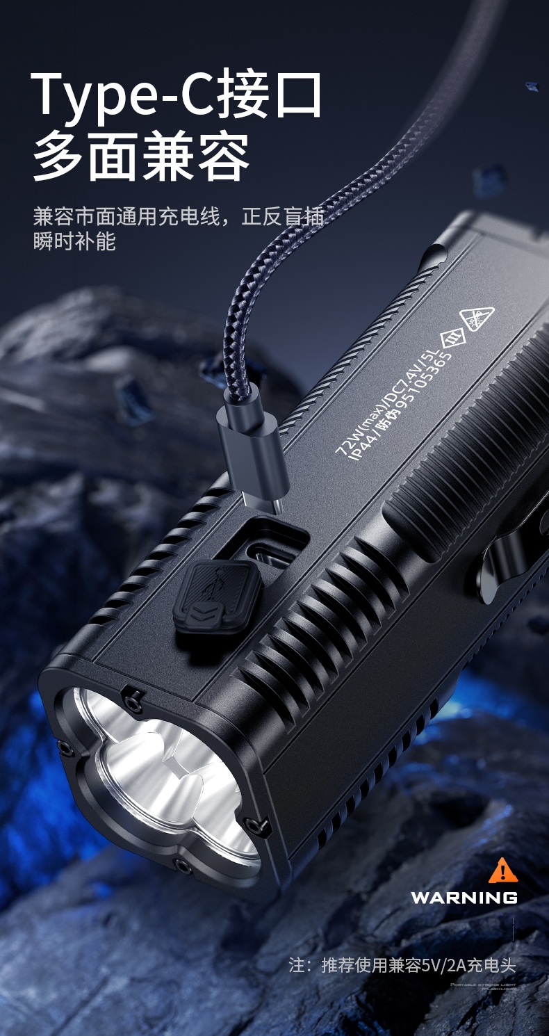 四档调光 Type-C充电 电量显示 铝合金筒身 持久续航 强力防水