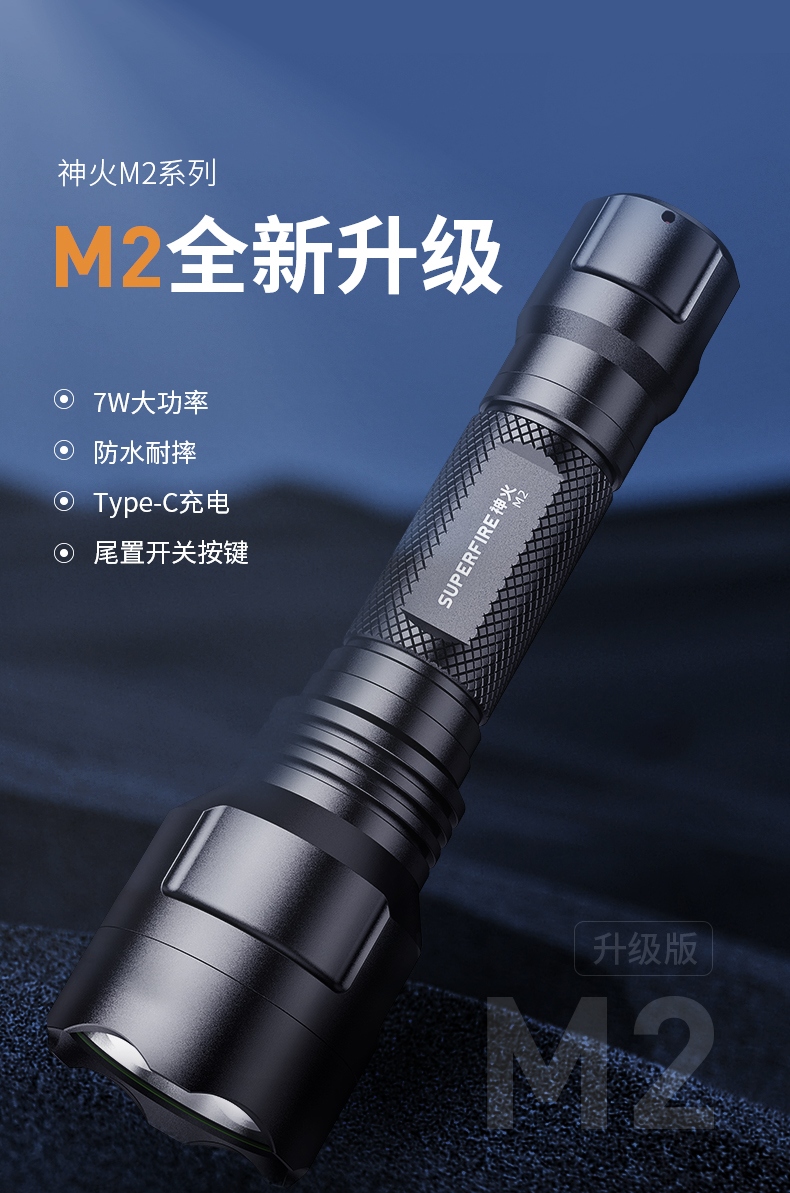 四档调光 Type-C充电 电量显示 铝合金筒身 持久续航 强力防水