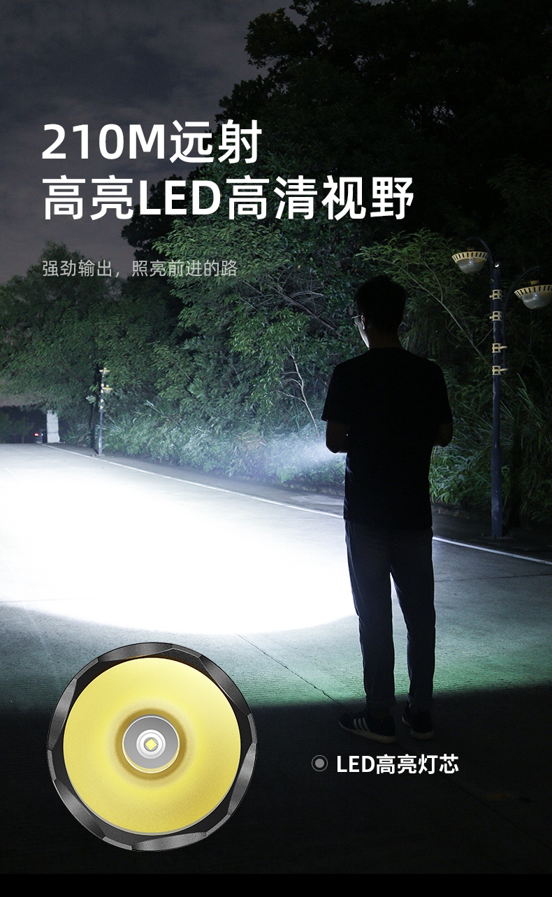 1、千米远射,射程更远,光斑更聚焦。 2、进口灯珠,亮度高,照明效果更好。 3、前后双按键,光源一键点亮,高亮瞬间开启。
