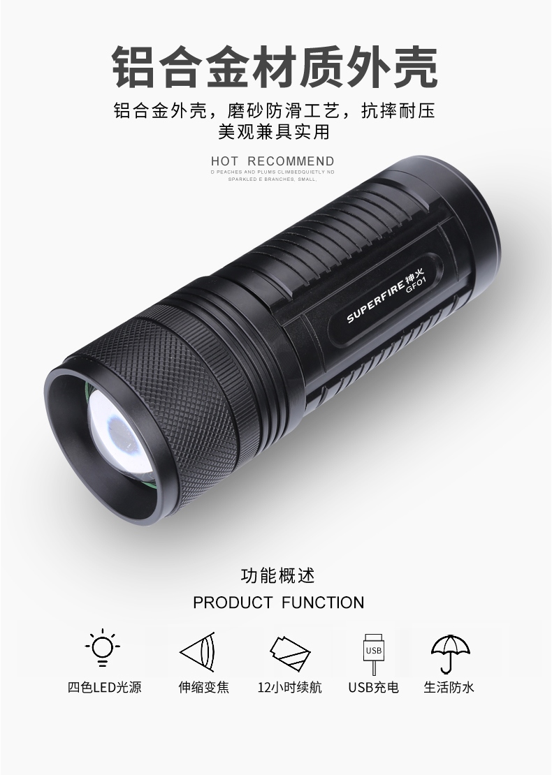 四档调光 Type-C充电 电量显示 铝合金筒身 持久续航 强力防水
