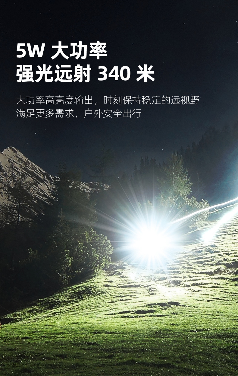 1、千米远射,射程更远,光斑更聚焦。 2、进口灯珠,亮度高,照明效果更好。 3、前后双按键,光源一键点亮,高亮瞬间开启。