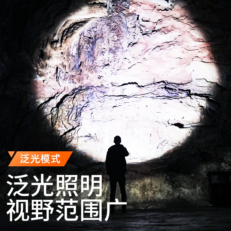 聚光主灯 亮度随心 轻按后端开关按钮,主灯强光点亮,续按依次切换主灯工作光-爆闪光。主灯开启状态下长按5秒,可实现光源色温转换。主灯关闭状态下长按5秒,可开启灯具最亮照明模式。 爆亮强光 亮如白昼 1500LM大功率高亮光源,点亮顷刻如白昼