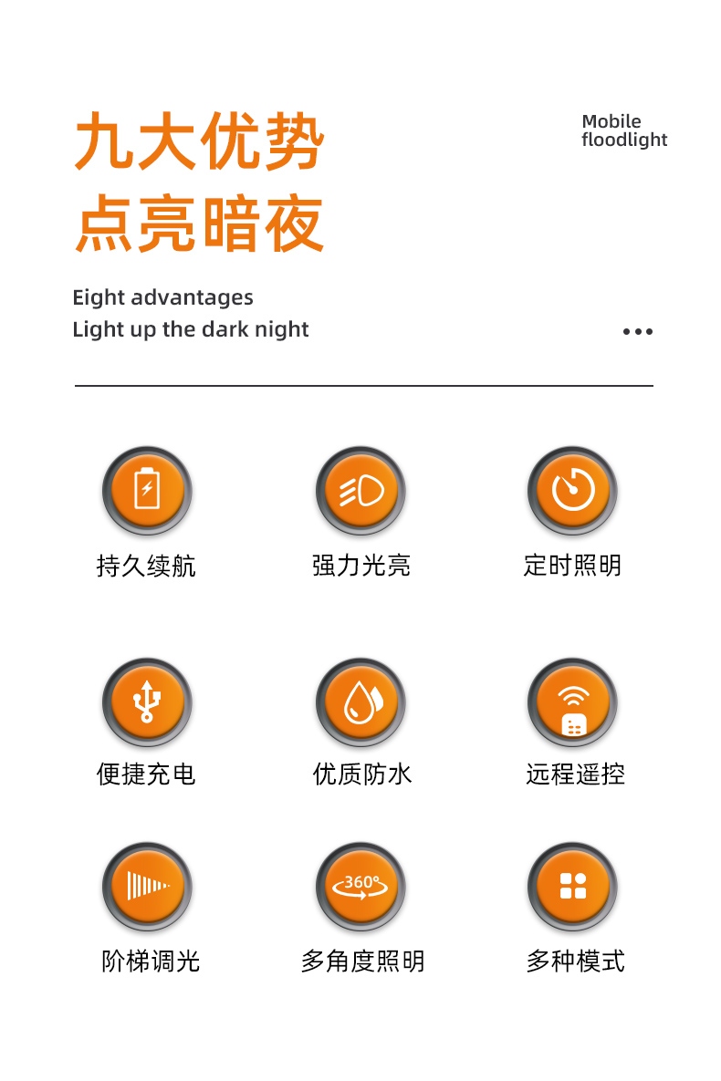 4模式调光 18小时续航 强光|中光|弱光|警示灯 远程遥控|阶梯调光|定时照明