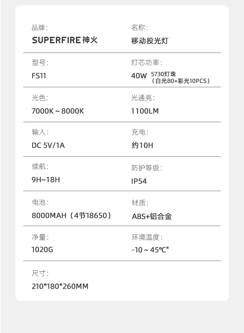 1、大尺寸铝合金光杯,光斑更圆润。 2、新型高亮远射灯珠,40W大功率,亮度高,照明效果好。