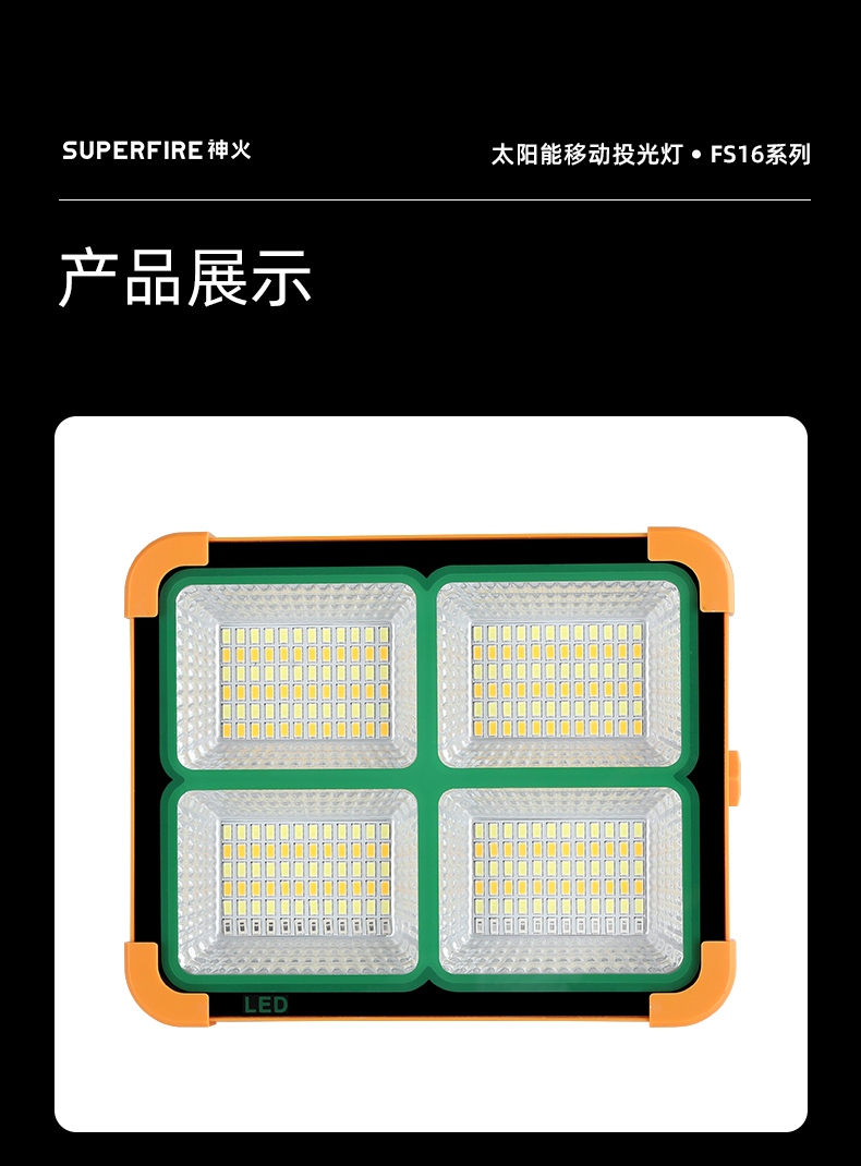1、多档调光,可满足不同使用场景下的照明需求; 2、含提手,握感更舒适。携带更简单; 3、新型高亮远射灯珠,60W大功率,亮度高,照明效果好。