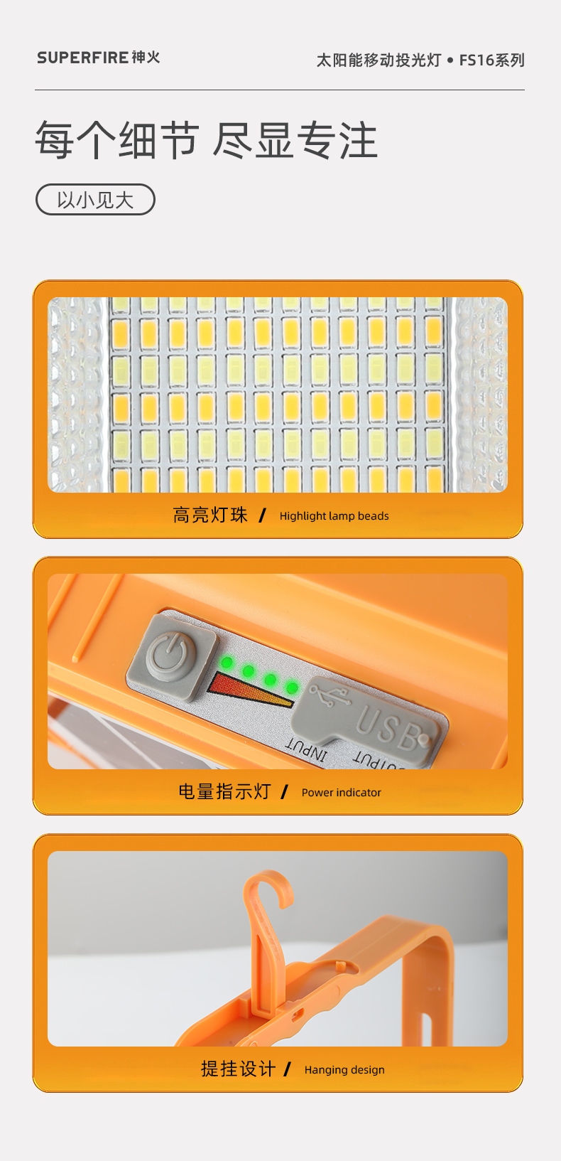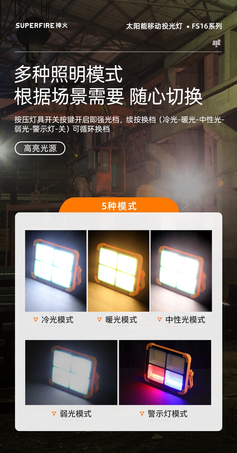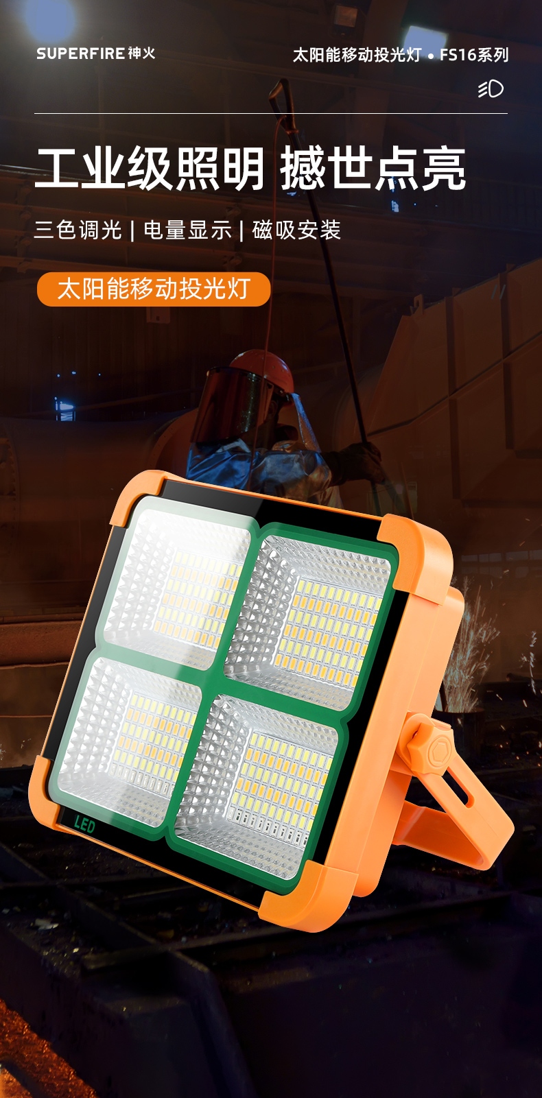 高亮光源 持久续航 三色光源 应急警示 电量指示 磁吸安装 太阳能充电