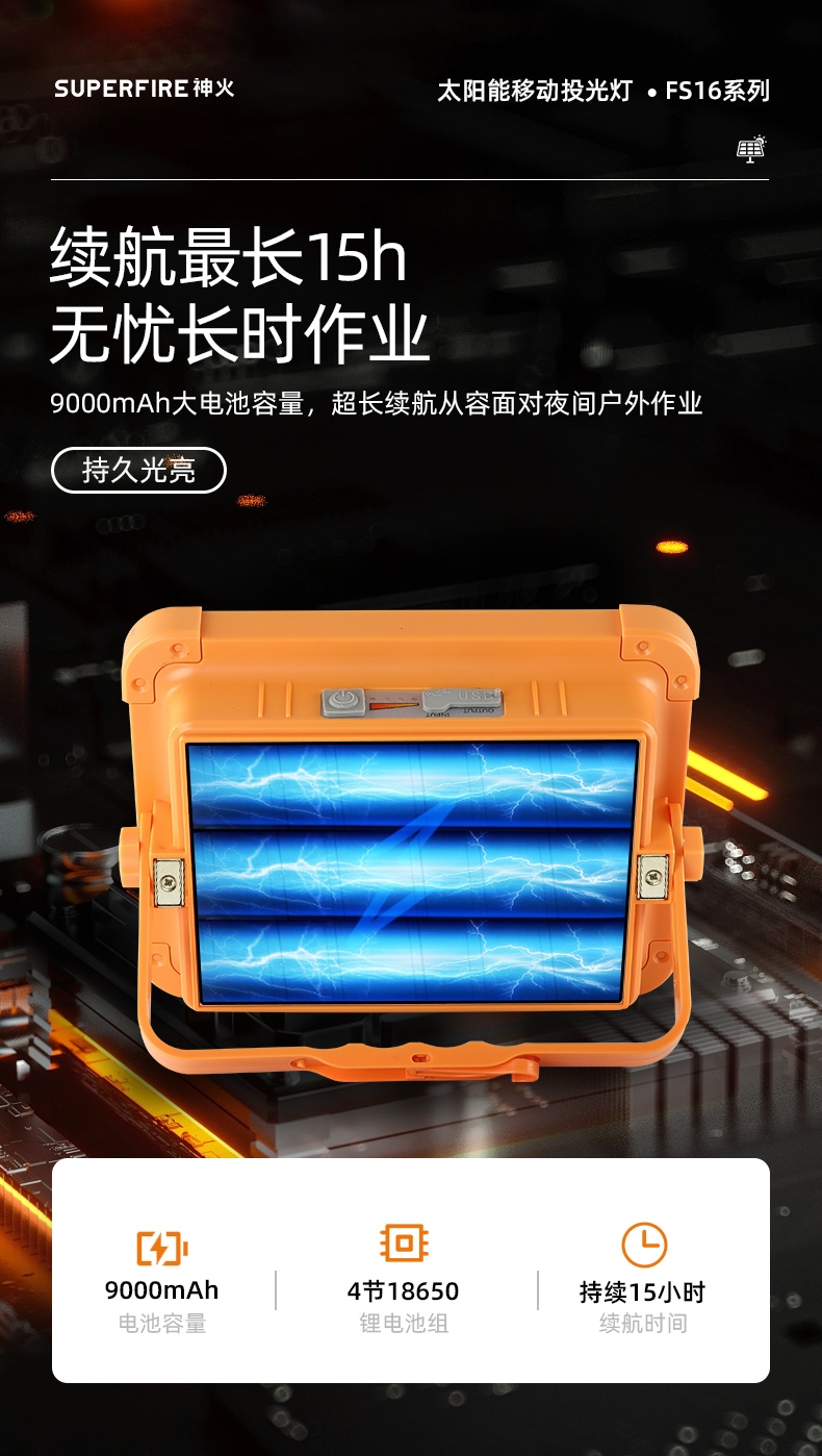 9000mAh大电池容量,超长续航从容面对夜间户外作业