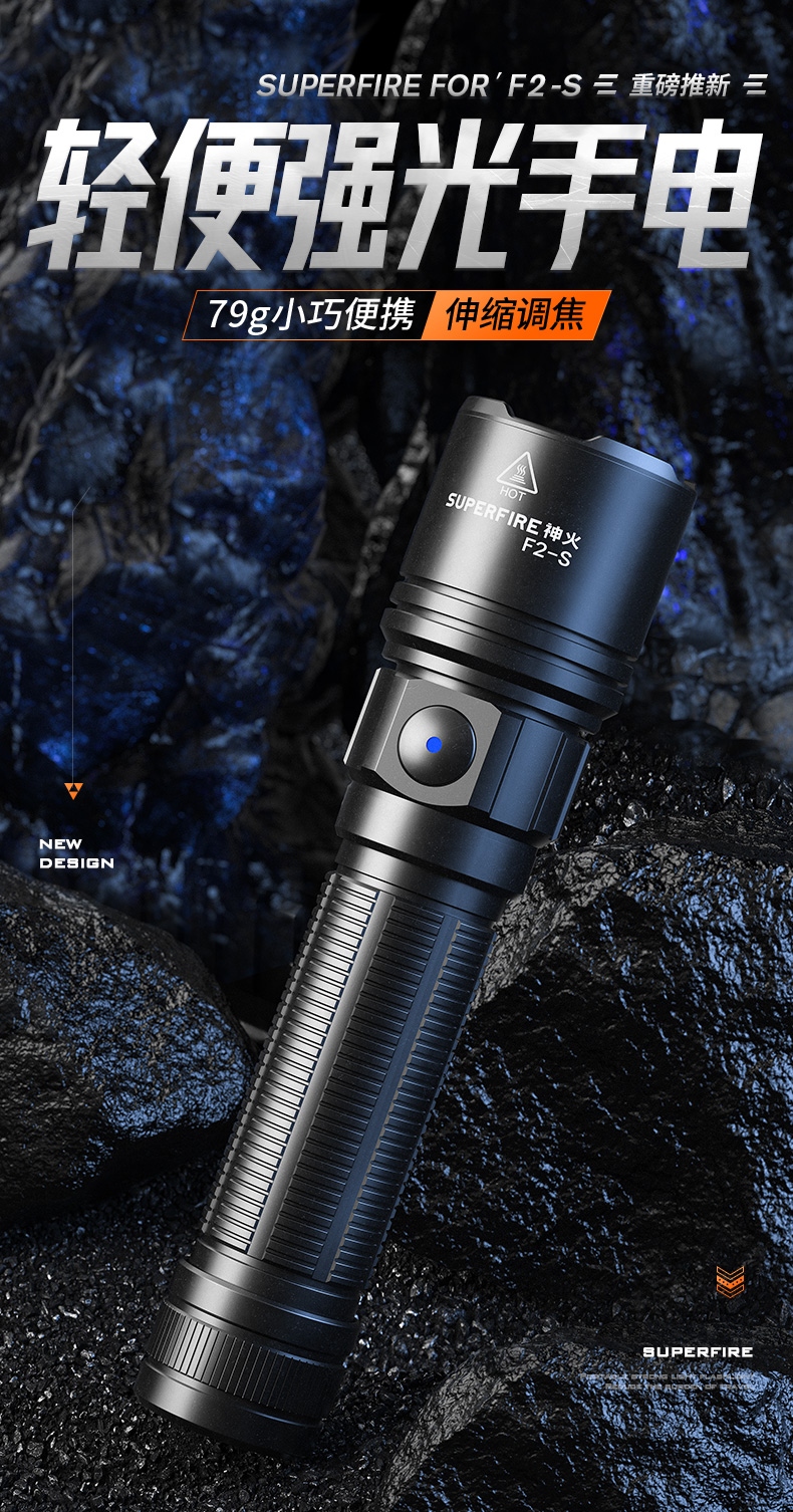 1、千米远射,射程更远,光斑更聚焦。 2、进口灯珠,亮度高,照明效果更好。 3、前后双按键,光源一键点亮,高亮瞬间开启。