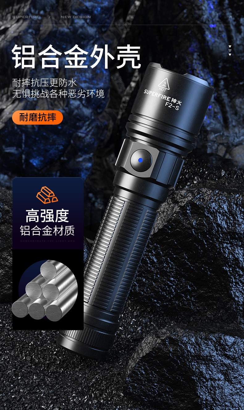 3、铝合金筒身、防摔抗击。