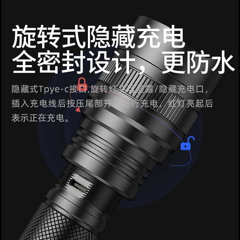 四档调光 Type-C充电 电量显示 铝合金筒身 持久续航 强力防水