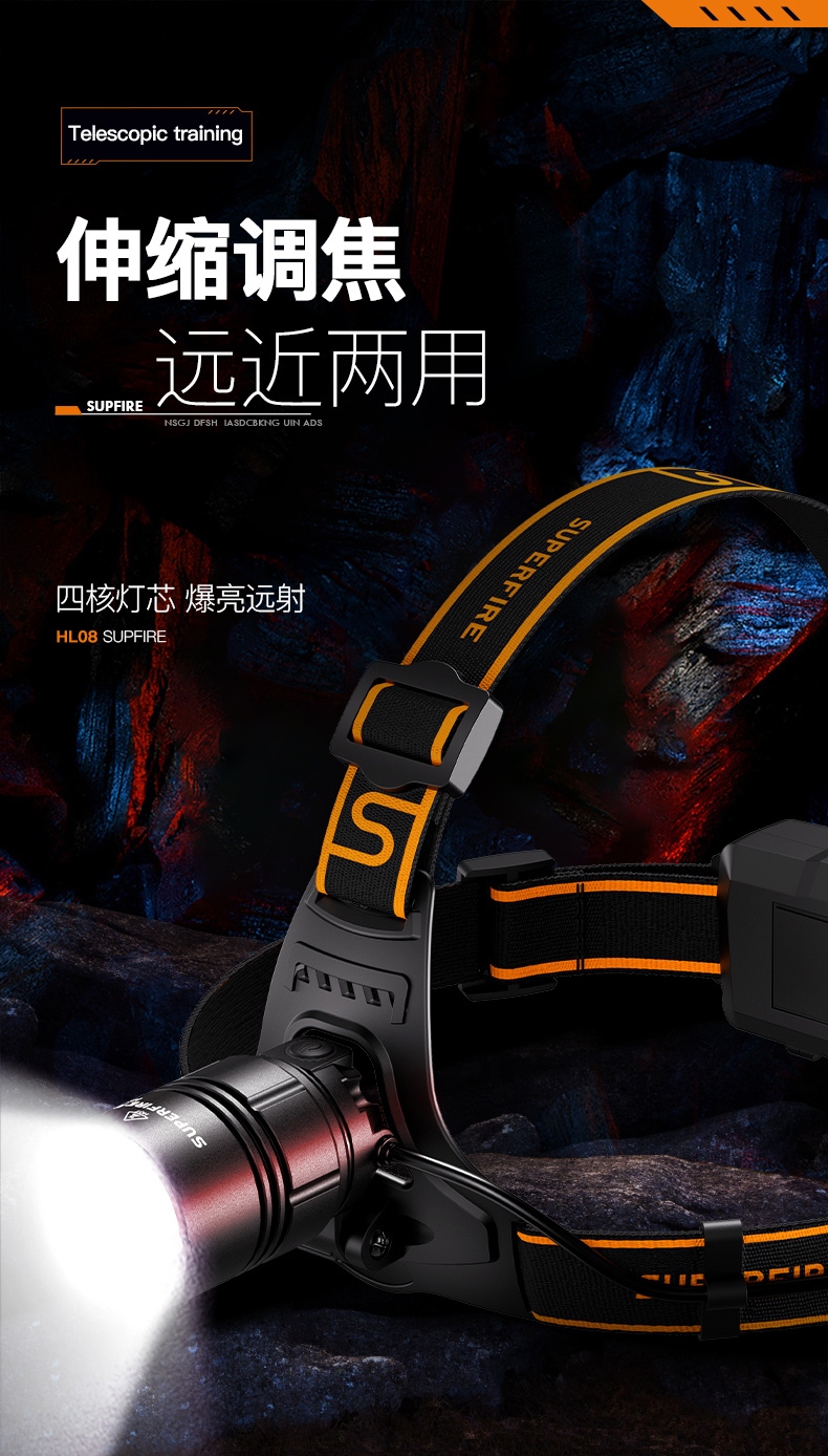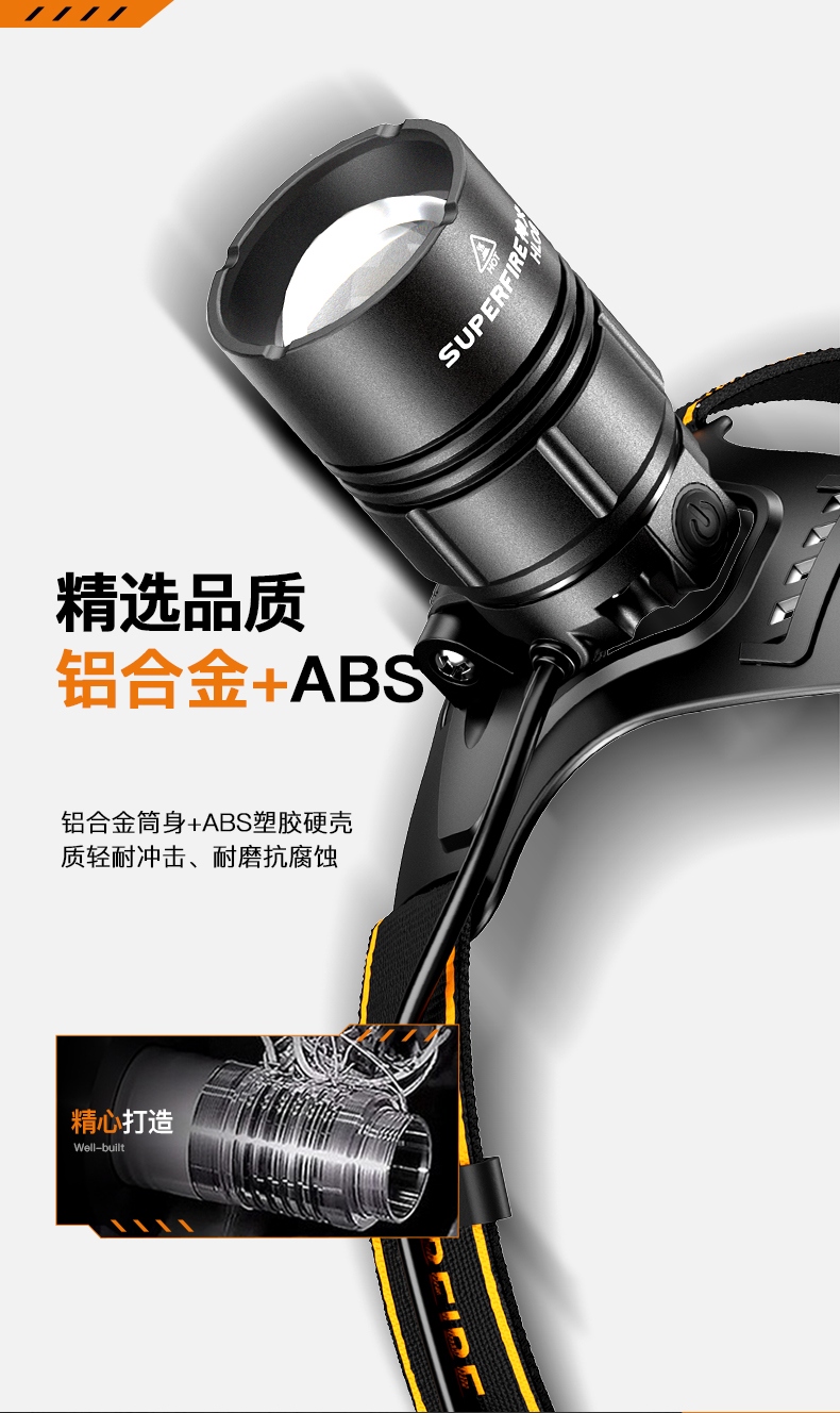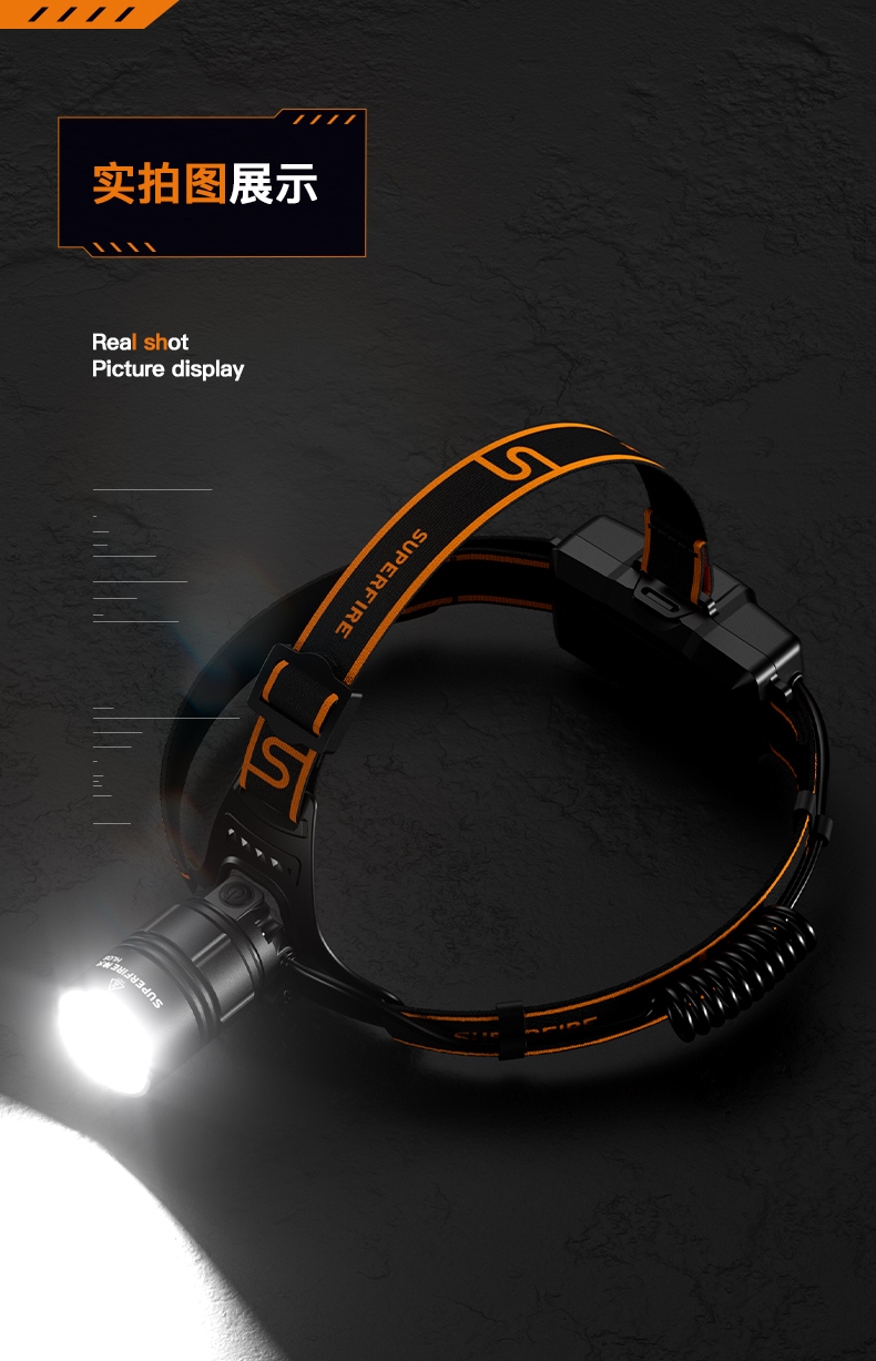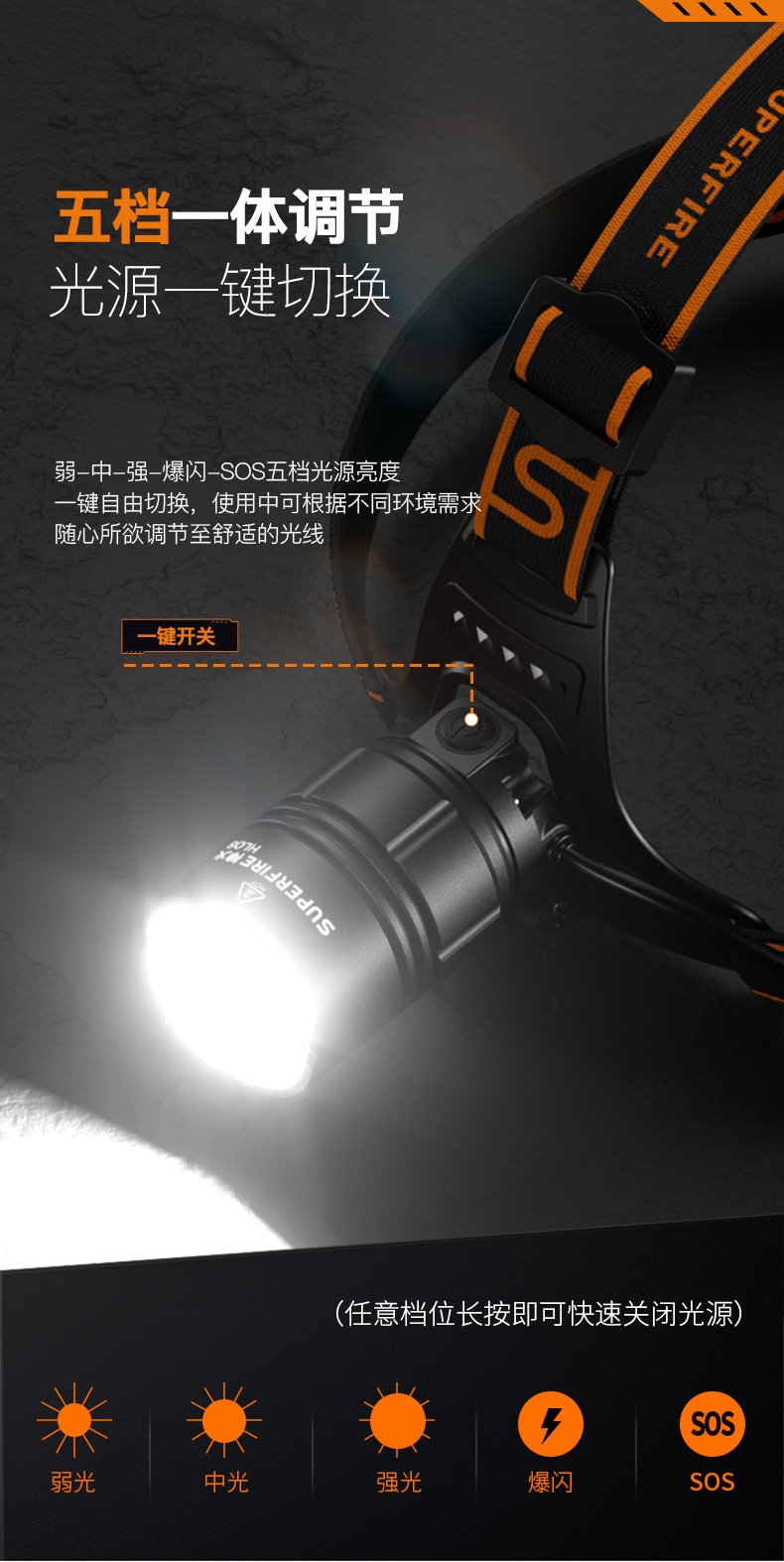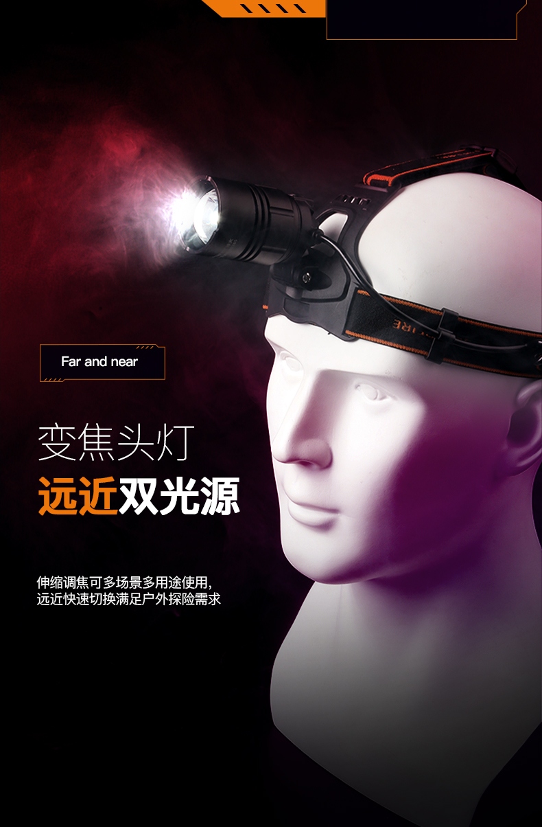 强光亮度,运动头灯,前后均衡设计,轻便不压头,可调节式头灯带,佩戴方便舒适,伸缩调焦,光照范围大,照射距离远,头灯角度调节,超90度角度随意调节,适宜各种环境使用