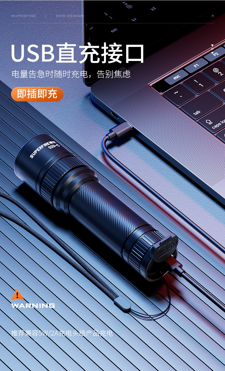 1、千米远射,射程更远,光斑更聚焦。 2、进口灯珠,亮度高,照明效果更好。 3、前后双按键,光源一键点亮,高亮瞬间开启。