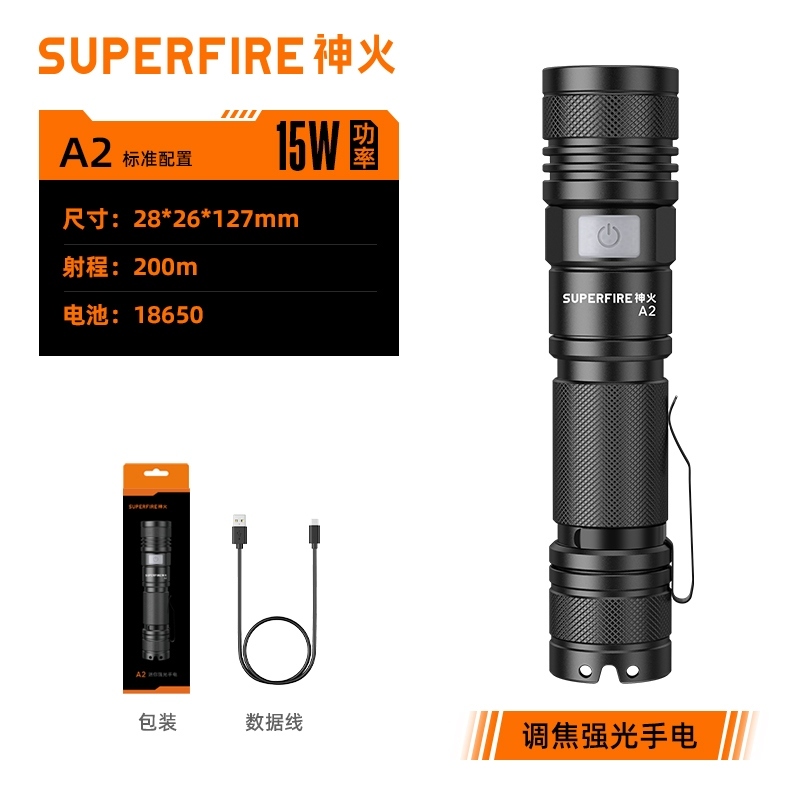 1、千米远射,射程更远,光斑更聚焦。 2、进口灯珠,亮度高,照明效果更好。 3、前后双按键,光源一键点亮,高亮瞬间开启。