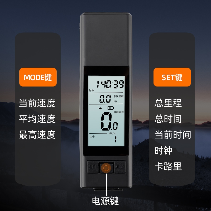 长按开关键开启/关闭码表,再按开启光源档位依次:强光-弱光-闪烁-关闭
