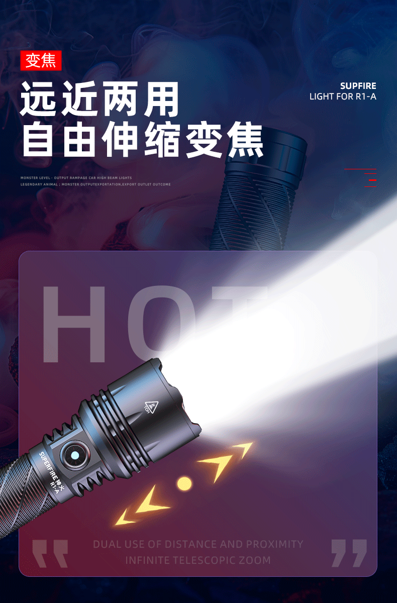 1、推拉灯头可实现伸缩调焦;