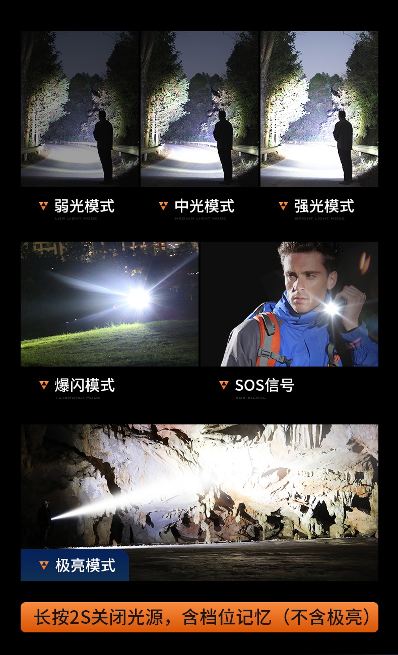 1、六档调光,可满足不同使用场景下的照明需求。 2、进口高亮朗明纳斯灯珠,照明效果更好。 3、含档位记忆,任意档位快捷关机 ,开机恢复关机前档位。