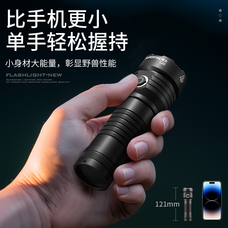 1、千米远射,射程更远,光斑更聚焦。 2、进口灯珠,亮度高,照明效果更好。 3、前后双按键,光源一键点亮,高亮瞬间开启。