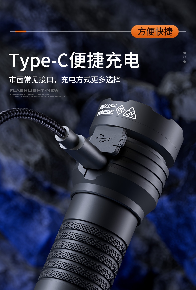 四档调光 Type-C充电 电量显示 铝合金筒身 持久续航 强力防水