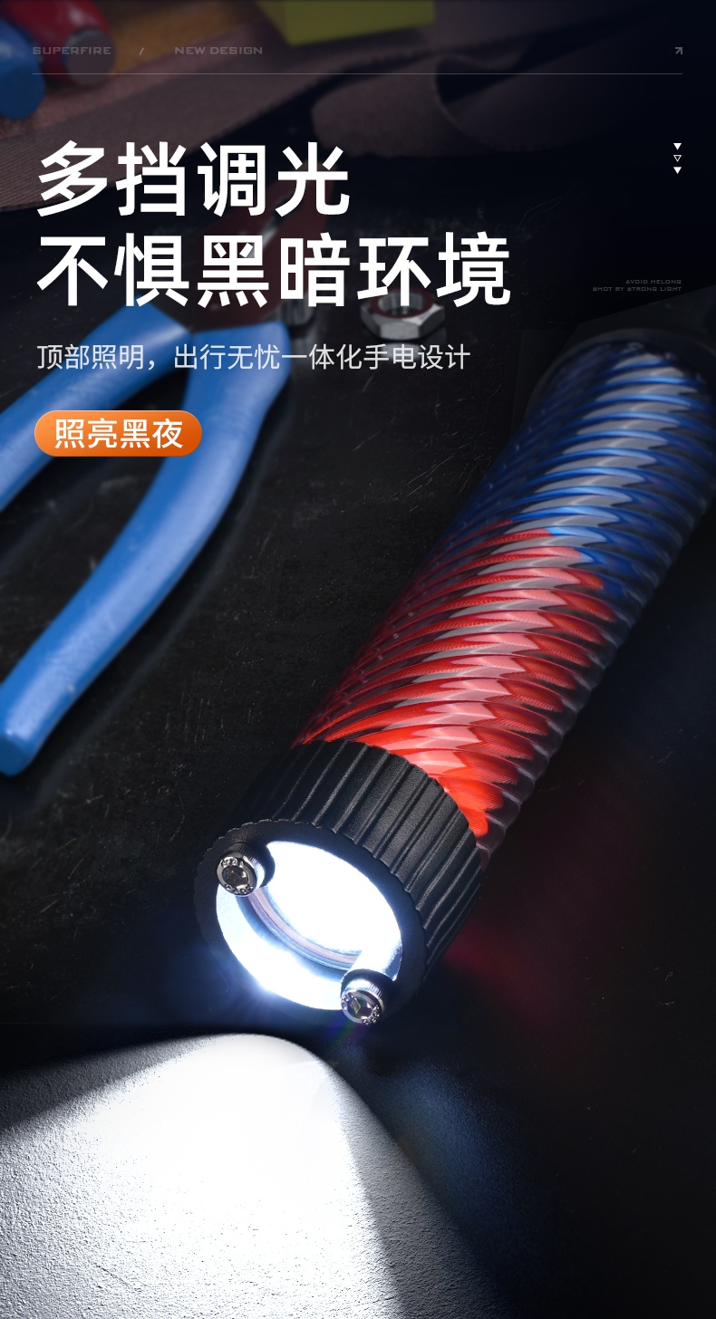 1、六档调光,可满足不同使用场景下的照明需求。 2、进口高亮朗明纳斯灯珠,照明效果更好。 3、含档位记忆,任意档位快捷关机 ,开机恢复关机前档位。
