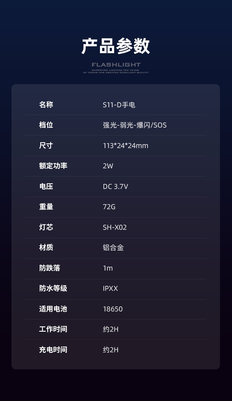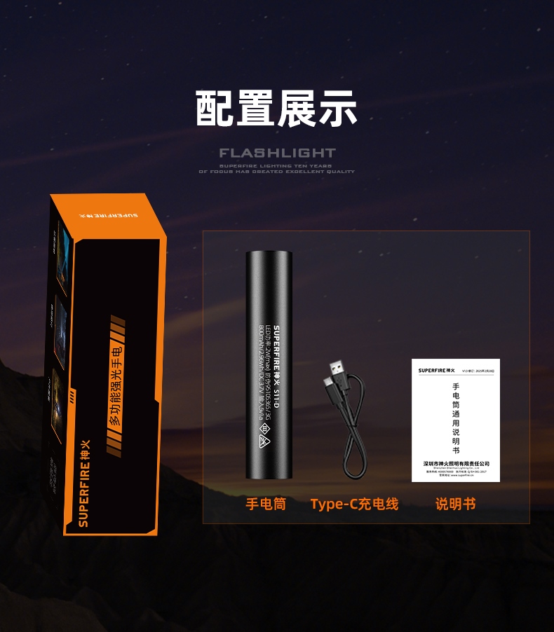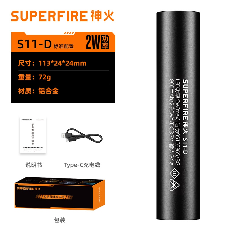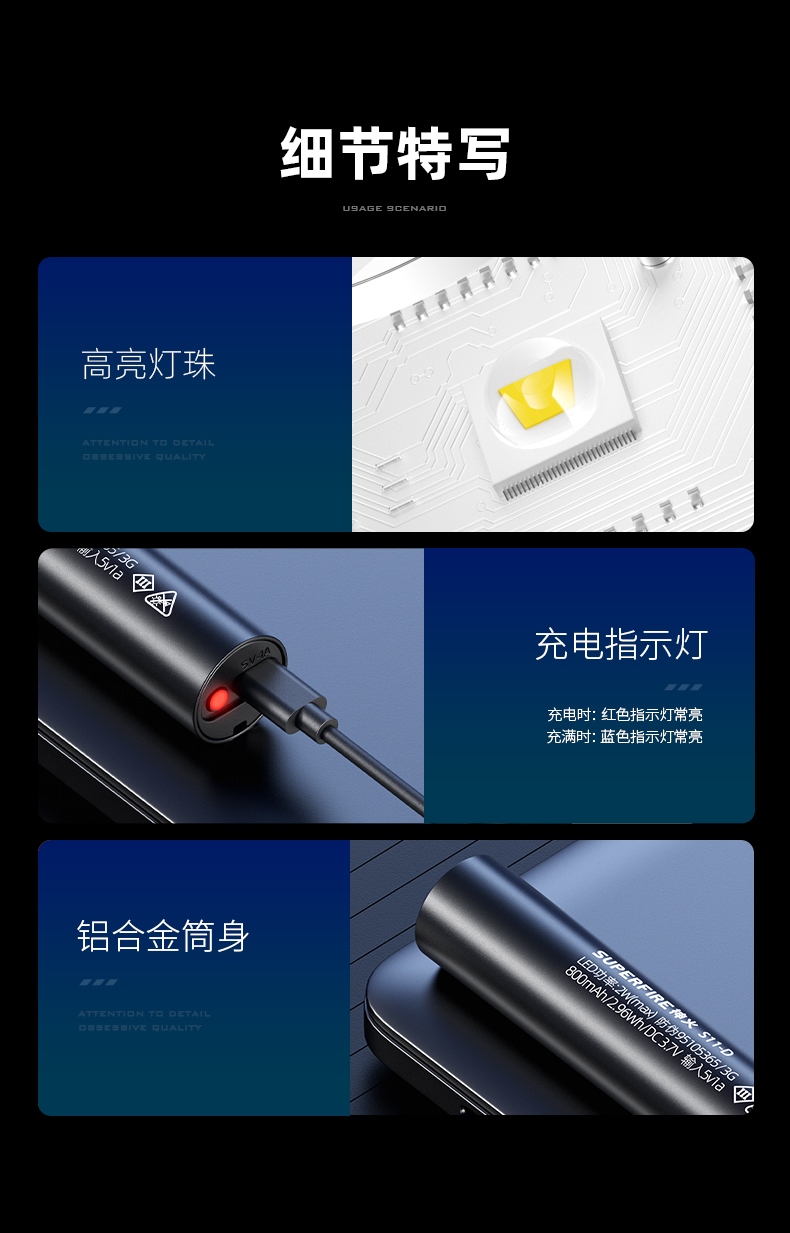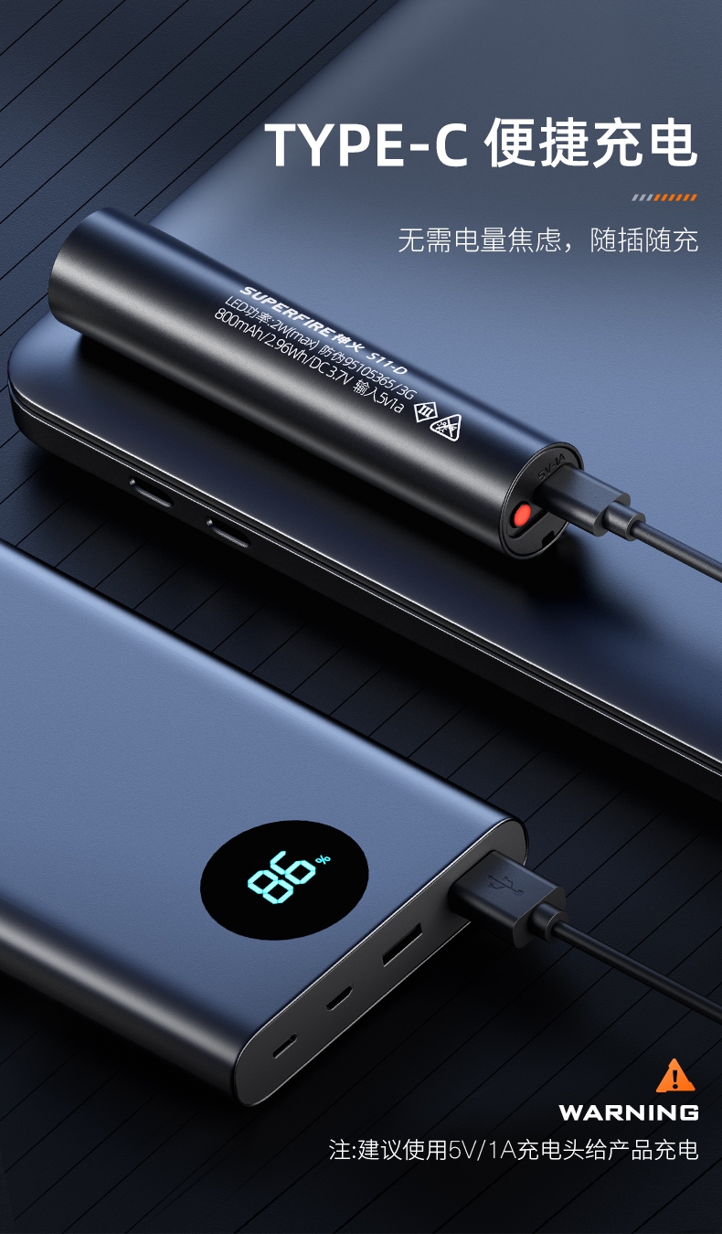 四档调光 Type-C充电 电量显示 铝合金筒身 持久续航 强力防水