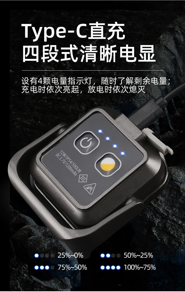 四档调光 Type-C充电 电量显示 铝合金筒身 持久续航 强力防水