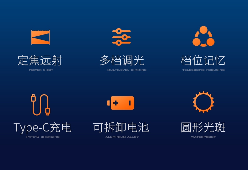 四档调光 Type-C充电 电量显示 铝合金筒身 持久续航 强力防水
