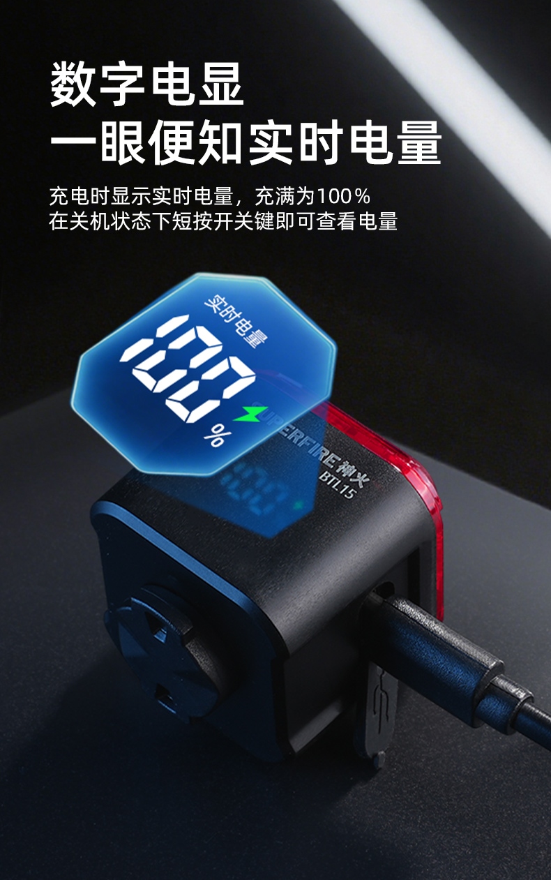 四档调光 Type-C充电 电量显示 铝合金筒身 持久续航 强力防水