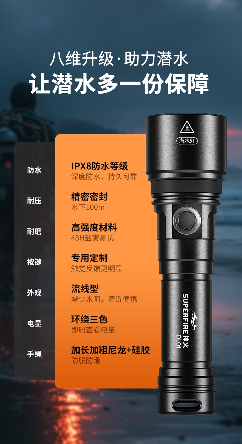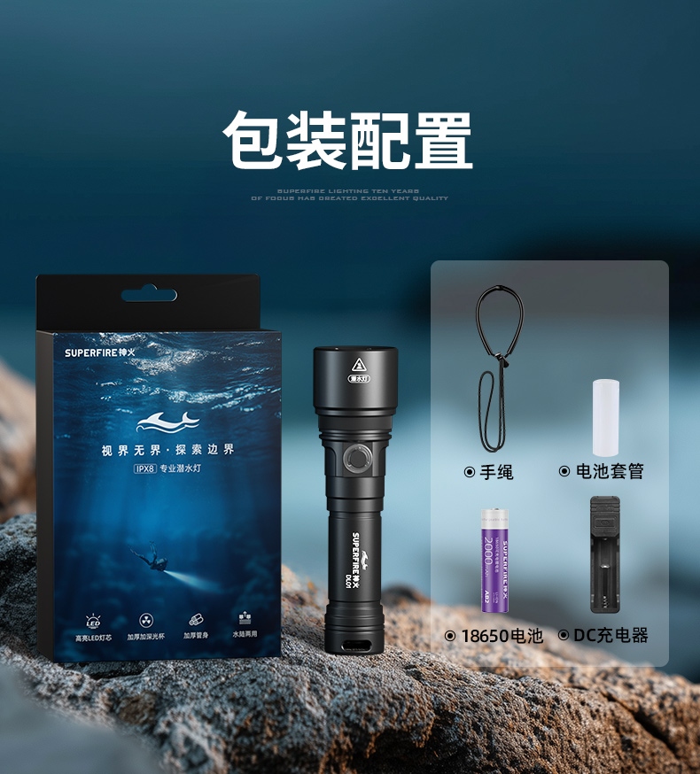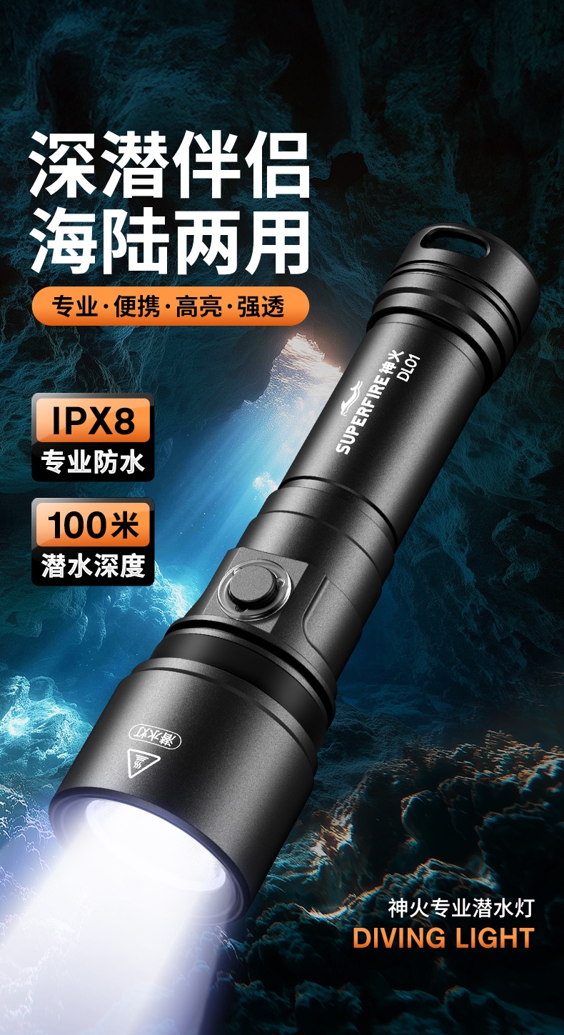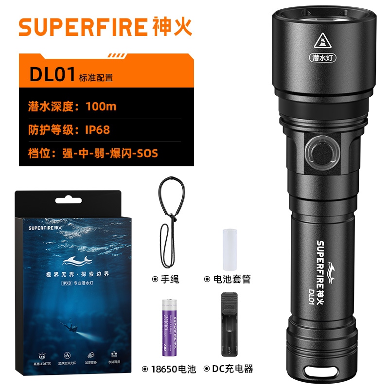 SUPERFIRE神火专业潜水灯DL01(18650)