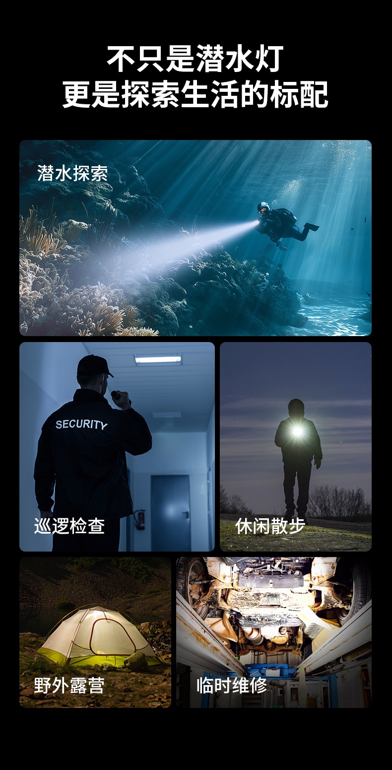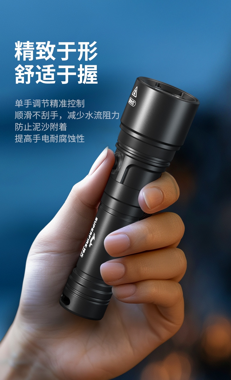 紧凑便携设计:轻量化设计与人体工学外形相结合,方便携带且握持舒适,不会给潜水者带来额外负担。