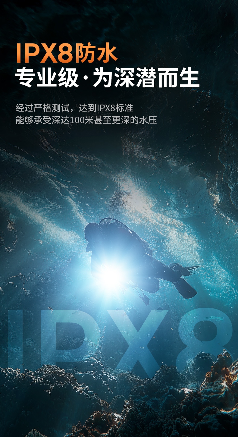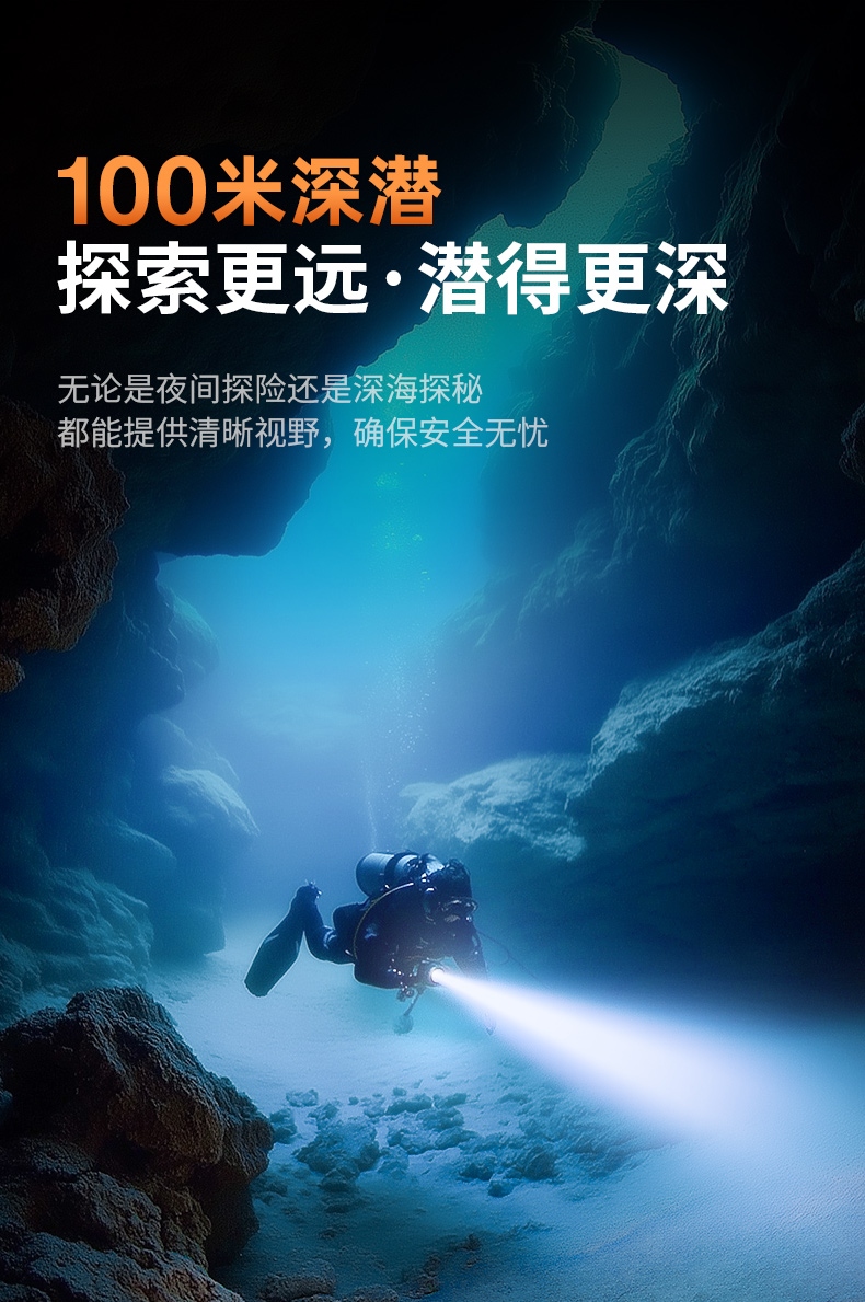 1、专业级防水设计:经过严格测试,达到IP68标准,能够承受深达100米甚至更深的水压,是深海探索的理想选择。 2、坚固耐用材料:外壳使用航空级铝合金制造,具备出色的抗冲击和耐腐蚀性能,适合各种恶劣环境下的使用。
