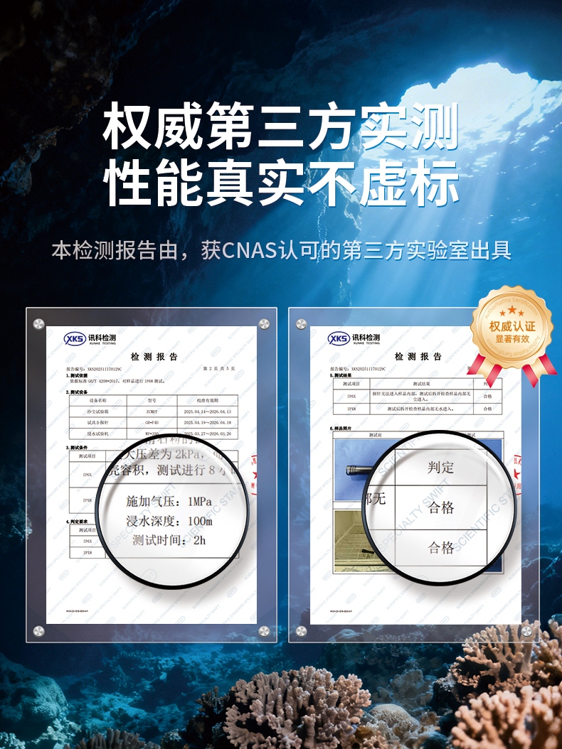 专业级防水设计:经过严格测试,达到IP68标准,能够承受深达100米甚至更深的水压,是深海探索的理想选择。