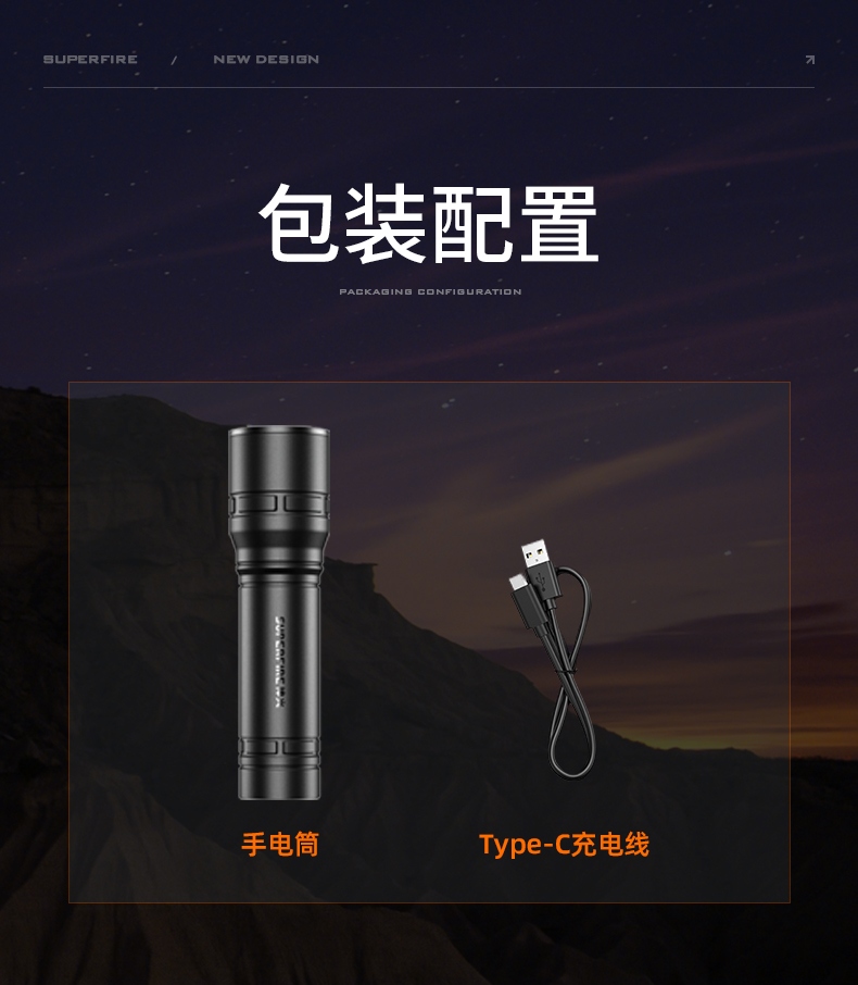 四档调光 Type-C充电 电量显示 铝合金筒身 持久续航 强力防水