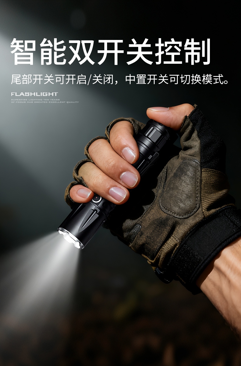 四档调光 Type-C充电 电量显示 铝合金筒身 持久续航 强力防水