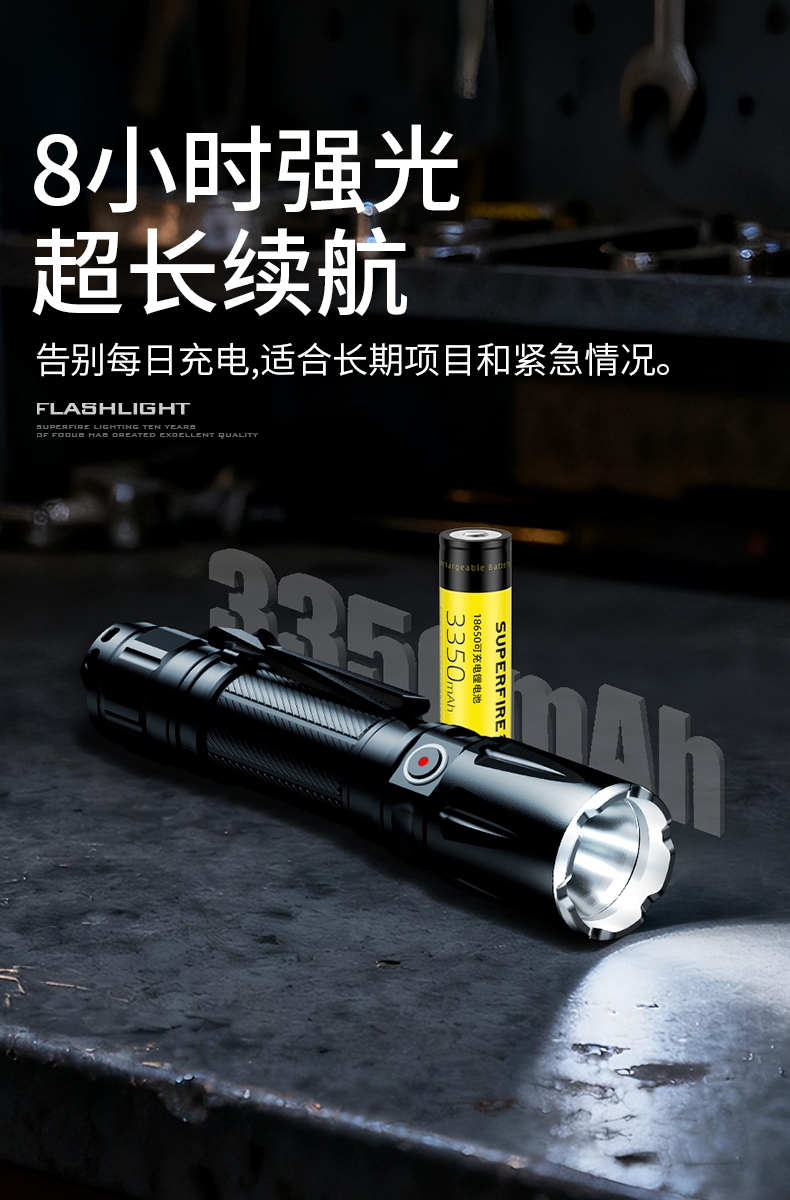 9、告别一天一充!8小时超长续航,照亮整个旅程/项目/应急期。
