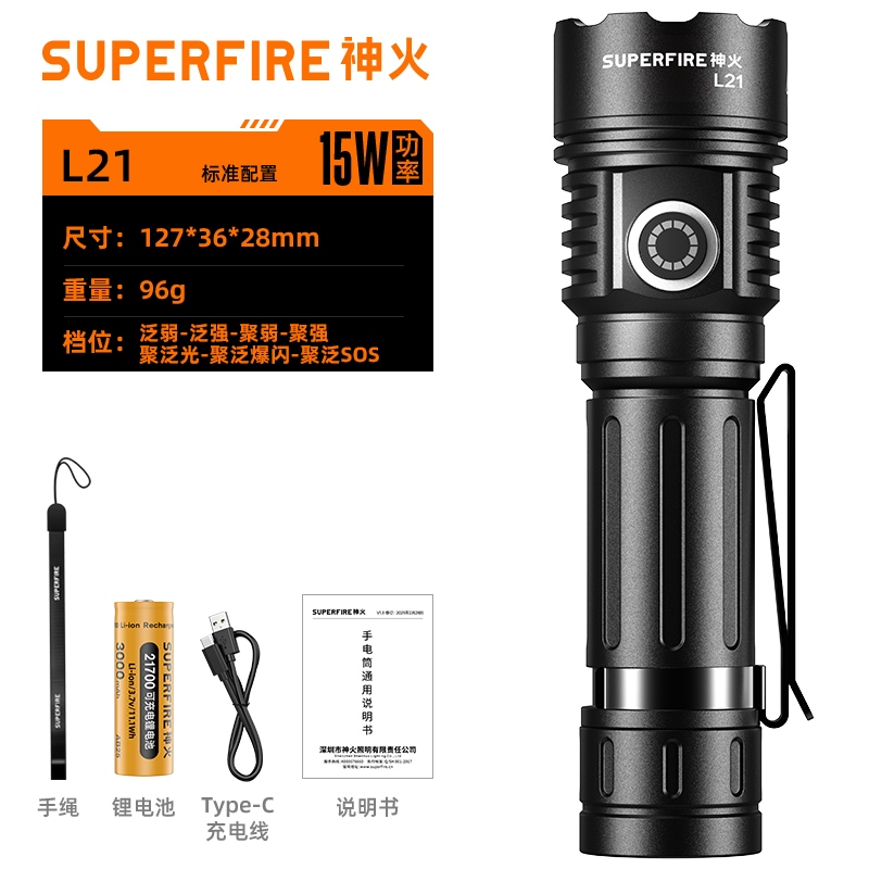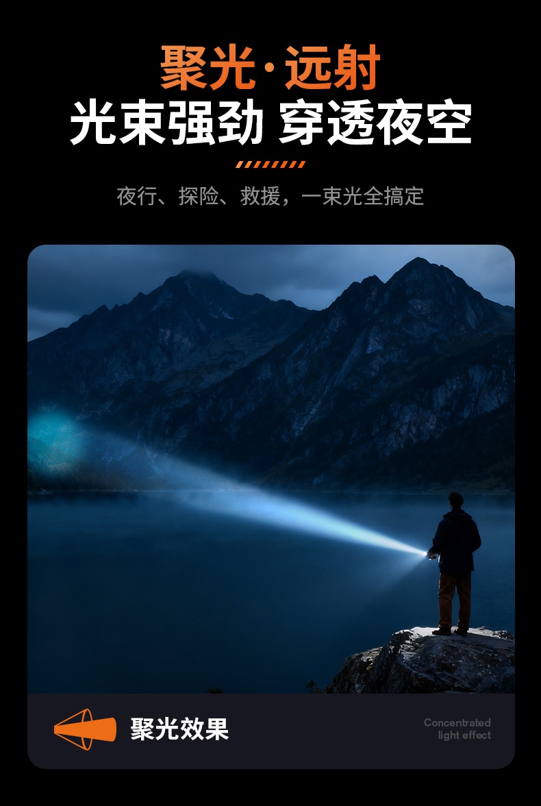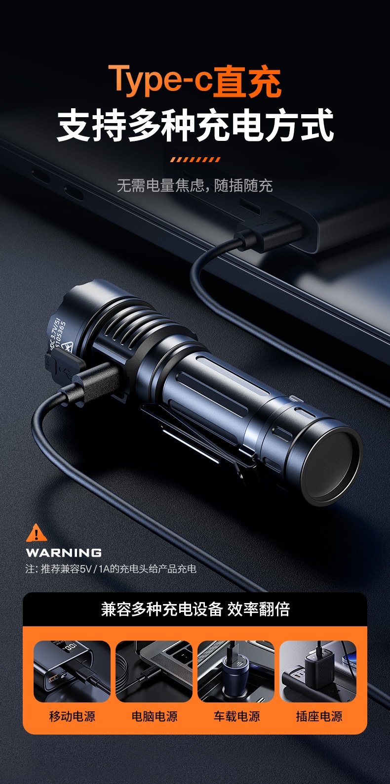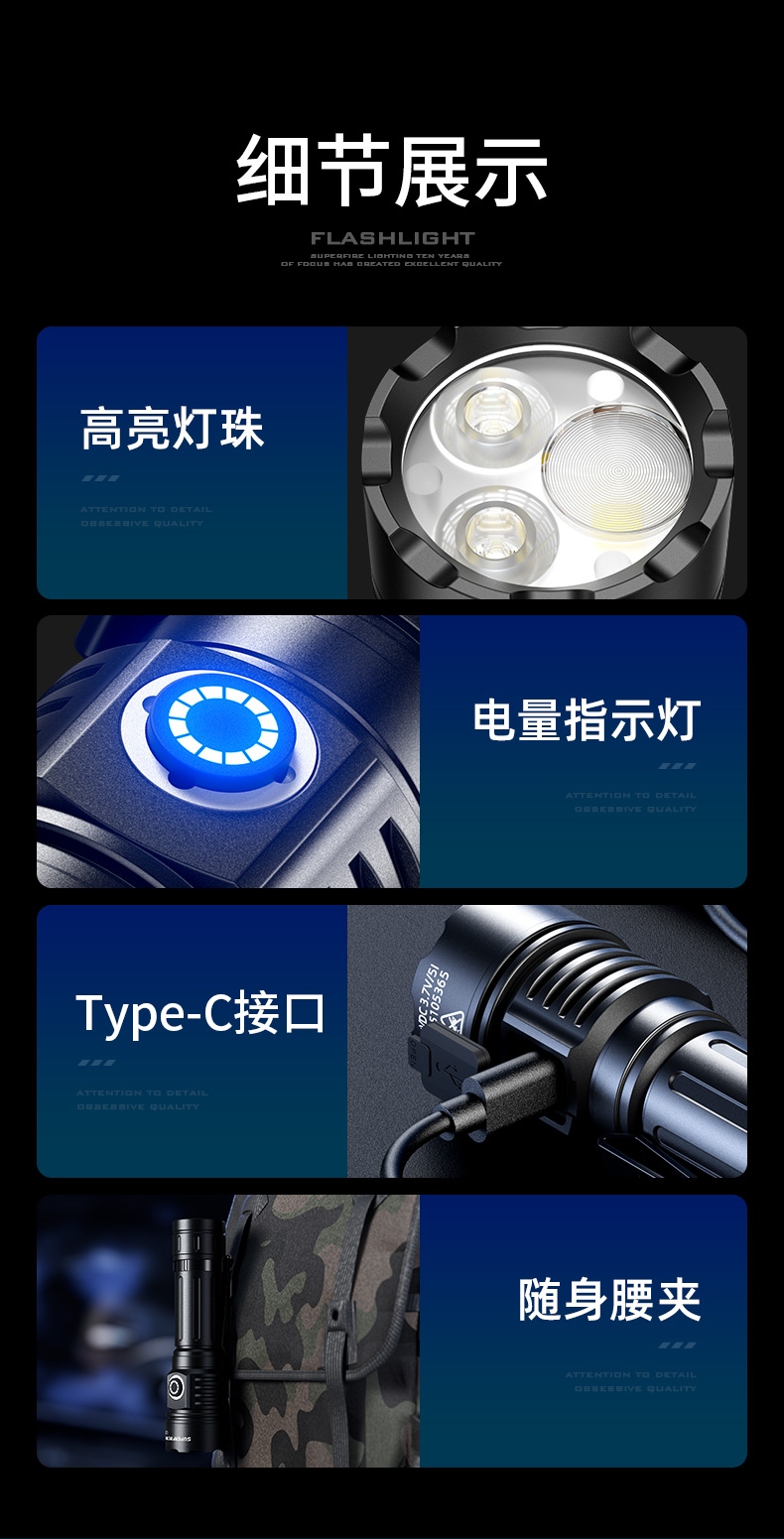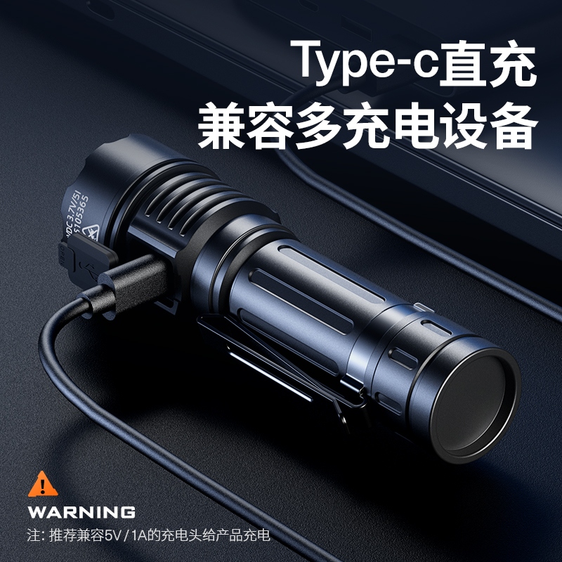 四档调光 Type-C充电 电量显示 铝合金筒身 持久续航 强力防水