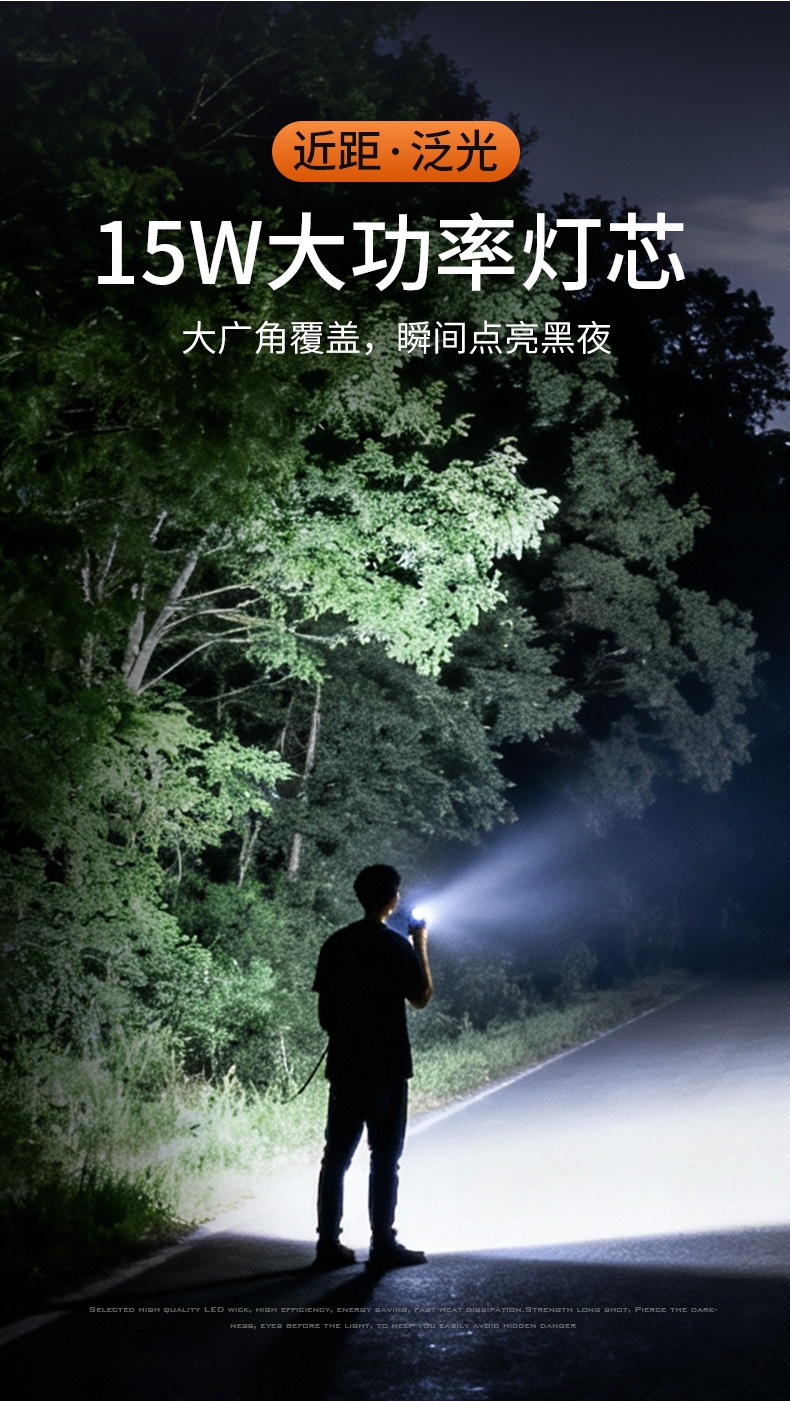 3、新型远射灯珠,15W功率,亮度高,照明效果好。